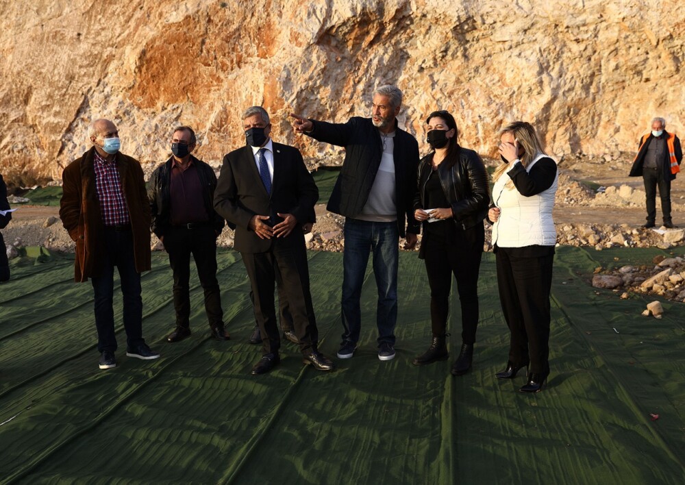 «Είμαστε πάνω στο πεδίο που έχει δημιουργηθεί από τις εναποθέσεις ραδιοενεργού φωσφογύψου και με τη βοήθεια και χρηματοδότηση της Περιφέρειας Αττικής κλείνει μία πορεία 12 χρόνων της οριστικής και πλήρους αποκατάστασης του ΧΑΔΑ Σχιστού με επικίνδυνα ραδιενεργά απόβλητα. Ο στόχος μας είναι πέρα από την αποκατάσταση του περιβάλλοντος να πάμε και σε κάτι ακόμα πιο θετικό όπου θα δούμε, είτε κάποιες ήπιες μορφές ενέργειας, είτε ένα βιοθεματικό πάρκο για την προστασία της άγριας ζωής. Είναι σημαντικό να πούμε ότι αυτή η πληγή στο σώμα της Αθήνας δημιουργήθηκε με την ευθύνη και την ανοχή κάποιων κρατικών υπηρεσιών. Σήμερα έρχεται η συνεργασία της Τοπικής Αυτοδιοίκησης πρώτου βαθμού με την Περιφέρεια Αττικής να το διορθώσει. Κύριε Περιφερειάρχη είμαστε ευγνώμονες εκ μέρους των 20 δήμων του ΠΕΣΥΔΑΠ. Γιατί πραγματικά η ύπαρξη των 10 εκατομμυρίων τόνων φωσφογύψου επηρεάζει τη ζωή και την υγεία του συνόλου των κατοίκων του λεκανοπεδίου. Έτσι λοιπόν μέχρι το τέλος του έτους θα έχει ολοκληρωθεί η μόνωση και στη συνέχεια σταδιακά θα μπει το χώμα για να ποτιστεί το βουνό».