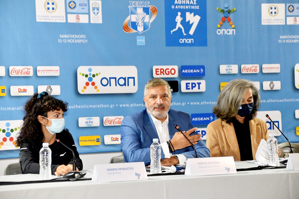 Στην επίσημη Συνέντευξη Τύπου με αφορμή τη διοργάνωση του Μαραθωνίου και στα εγκαίνια της έκθεσης Marathon EXPO, ο Περιφερειάρχης Αττικής Γ. Πατούλης