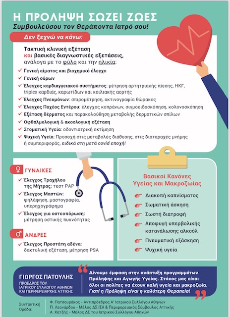 «Δίνουμε προτεραιότητα στην υγεία 365 μέρες το χρόνο. Με συμμάχους μας το υγειονομικό και στελεχιακό δυναμικό της Περιφέρειας Αττικής, του ΙΣΑ, του ΕΔΔΥΠΠΥ και των ΚΕΠ Υγείας, ισχυροποιούμε την πρόληψη και συμβάλλουμε στην προστασία της Υγείας των πολιτών. Όλοι μαζί ενωμένοι και δυνατοί ,διεκδικούμε υψηλού επιπέδου υπηρεσίες υγείας, για τους πολίτες. Από την πρώτη στιγμή της πανδημίας αναπτύξαμε ένα οργανωμένο σχέδιο δράσης και με στοχευμένες στρατηγικές παρεμβάσεις και έχουμε συνδράμει σημαντικά στην υγειονομική θωράκιση της Αττικής. Η συνέχιση της πανδημίας καταδεικνύει ότι είναι αναγκαίο στις δύσκολες αυτές στιγμές, αυτοδιοίκηση, υγειονομικό προσωπικό, κοινωνία και πολιτεία να είναι ενωμένοι απέναντι στον κοινό εχθρό. Πρωταγωνιστής σε αυτή τη μάχη είναι το αξιόμαχο υγειονομικό προσωπικό μας που με αυταπάρνηση στάθηκε δίπλα στον πολίτη και στον ασθενή, προσφέροντας πολύτιμες υπηρεσίες. Η Περιφέρεια Αττικής κατά τη διάρκεια της πανδημίας, για την αντιμετώπιση των συνεπειών, έχει διαθέσει πάνω από 500 εκατομμύρια ευρώ. Μεταξύ άλλων διατέθηκαν 100 εκατ. από το ΠΕΠ Αττικής 2014-2020, για την πρόσληψη επικουρικού προσωπικού, γιατρούς και νοσηλευτές, σε 73 φορείς Υγείας της Αττικής, για την αντιμετώπιση της πανδημίας, δόθηκαν μέσω ΠΕΠ 64.000.000 ευρώ για αγορά ιατρικού εξοπλισμού που διατέθηκε στα Νοσοκομεία της Αττικής και τις Υγειονομικές Περιφέρειες. Επίσης όλο αυτό το διάστημα το Κέντρο Επιχειρήσεων της Περιφέρειας και του ΙΣΑ διενεργεί σειρά δράσεων, με τη διεξαγωγή rapid test, ενώ η τηλεφωνική γραμμή 1110 παρέχει δωρεάν πληροφορίες και υποστήριξη στους πολίτες. Θέλουμε να δημιουργήσουμε μια Περιφέρεια πρότυπο σε θέματα πρόληψης. Για το λόγο αυτό υλοποιείται στο σύνολο των Περιφερειακών Ενοτήτων της Αττικής με τη στενή συνεργασία του Ελληνικού Δικτύου Υγιών Πόλεων του Π.Ο.Υ. και τους 66 Δήμους της Αττικής το πρόγραμμα Πρόληψης και Προσυμπτωματικού Ελέγχου Υγείας. Για να καταφέρουμε όμως να πετύχουμε τα μέγιστα αποτελέσματα θέλουμε συμμάχους τους πολίτες, καθώς είναι βαρύνουσας σημασίας το ζήτημα της ατομικής ευθύνης. Εμπιστευόμαστε τα επιστημονικά επιτεύγματα και τα αξιοποιούμε για την προστασία του πολίτη».