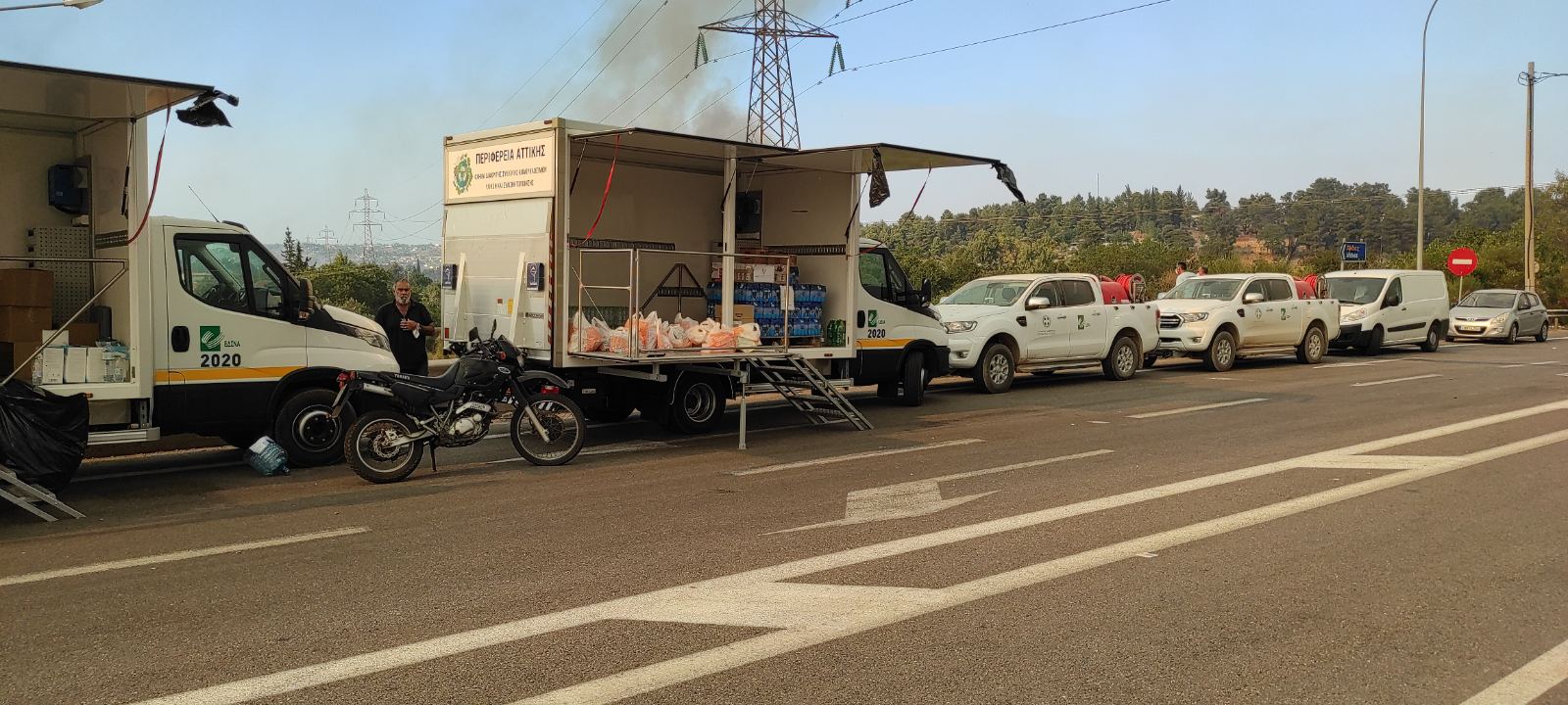 Επίσκεψη του Περιφερειάρχη στο σημείο τροφοδοσίας και συγκέντρωσης τροφίμων για τους πυρόπληκτους και τις δυνάμεις που συμβάλλουν στην πυρόσβεση