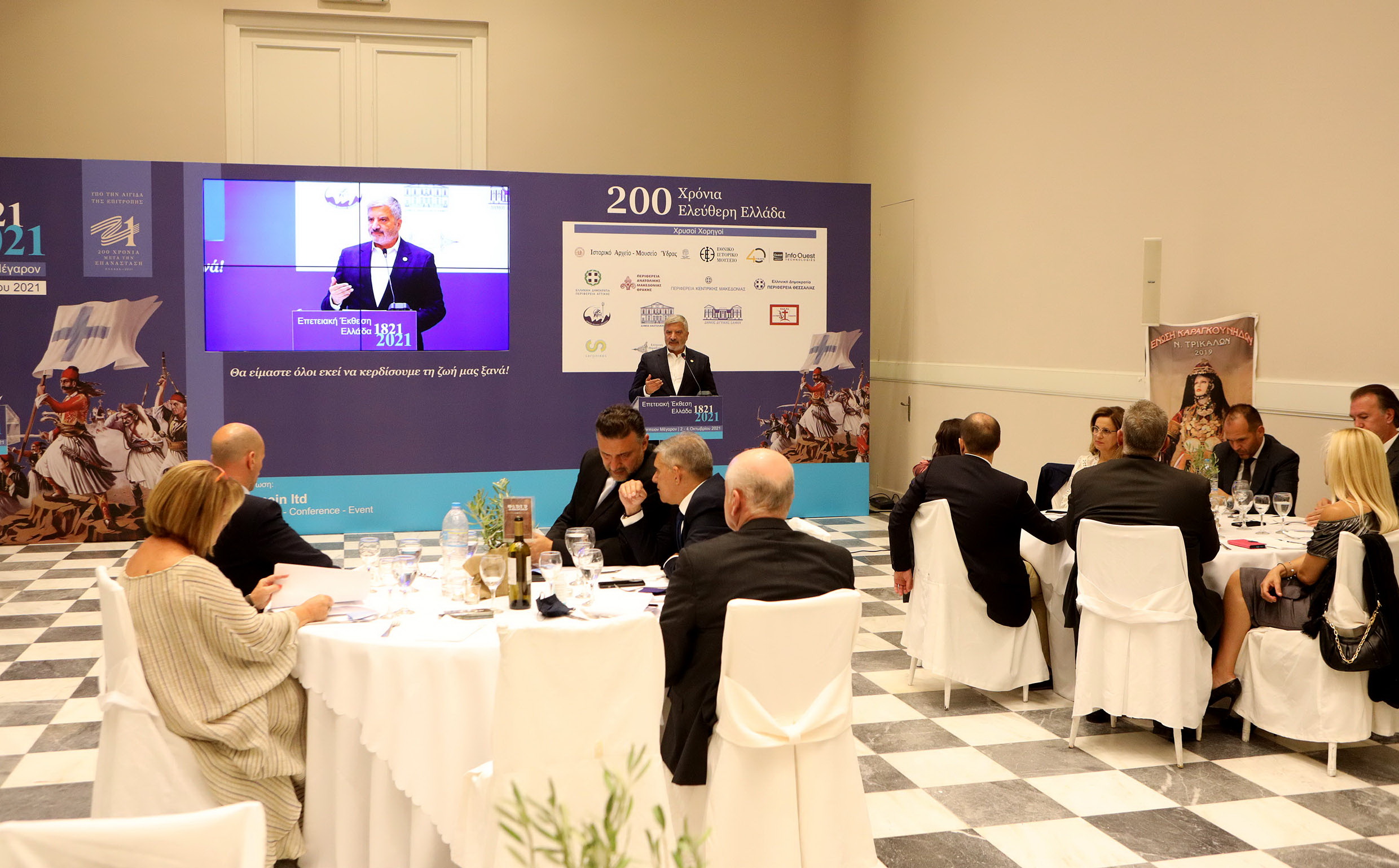 Ο Περιφερειάρχης Αττικής Γ. Πατούλης κατά τη διάρκεια της ομιλίας του χαρακτήρισε την Ελληνική Επανάσταση ως ένα από τα σημαντικότερα ιστορικά γεγονότα όχι μόνο της Ελλάδας, αλλά συνολικά της Νοτιοανατολικής Ευρώπης και συμπλήρωσε: «Ποιος θα μπορούσε να φανταστεί πριν από 200 χρόνια, ότι ένας λαός που ζούσε για αιώνες κάτω από το σκοτάδι της σκλαβιάς, θα ξεσηκωνόταν για να φέρει το φως της ελευθερίας και των αξιών του Διαφωτισμού σε όλα τα Βαλκάνια;Και όμως, ο αγώνας των λίγων και εκλεκτών, ο αγώνας των αποφασισμένων, αυτών που πίστεψαν στο όραμα του Ρήγα για τη λευτεριά των βαλκανικών λαών, άνοιξε το δρόμο και συνεχίζει να εμπνέει κάθε εποχή κάθε εραστή της ελευθερίας.Μέσα από τον αγώνα του Ελληνικού Έθνους, επέστρεψαν στην κοιτίδα τους οι αξίες του δυτικού πολιτισμού – η ελευθερία, η ισονομία, ο ανθρωπισμός, η ανεξιθρησκία – δίνοντας το φωτεινό παράδειγμα για όλους τους λαούς της Ευρώπης.Για την Περιφέρεια Αττικής, τα 200 χρόνια από την Έναρξη της Ελληνικής Επανάστασης ήταν η αφορμή για να τιμήσουμε τις διαχρονικές ηθικές και πολιτιστικές αξίες του Ελληνισμού μέσα από πολυποίκιλες καλλιτεχνικές και επιστημονικές εκδηλώσεις, δεκάδες θεατρικά και μουσικά έργα, εκθέσεις και ημερίδες, με κέντρο αναφοράς και πηγή έμπνευσης τον ηρωικό αγώνα των Ελλήνων. Στην Περιφέρεια Αττικής καταβάλουμε κάθε δυνατή προσπάθεια για να ανταποκριθούμε στην αποστολή μας και στις απαιτήσεις της κοινωνίας, μέσα από τον στρατηγικό σχεδιασμό μας για το αύριο».