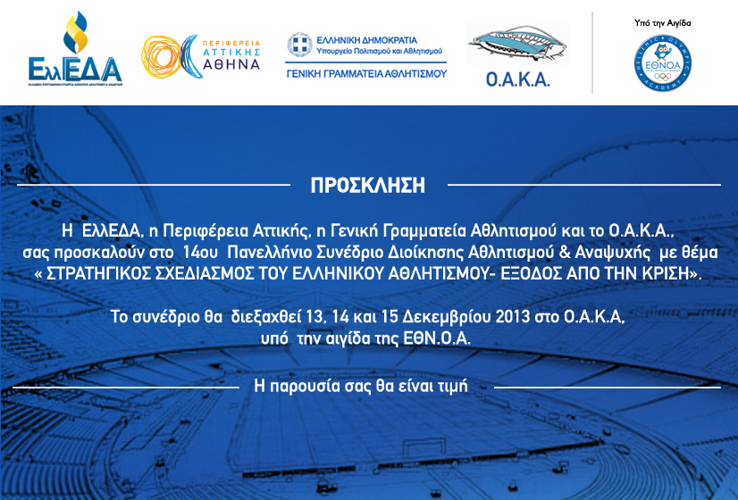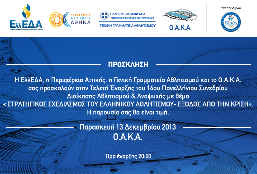 Η επίσημη τελετή έναρξης των εργασιών του Συνεδρίου θα πραγματοποιηθεί την Παρασκευή 13 Δεκεμβρίου 2013 στις 20:00 στο ΟΑΚΑ.