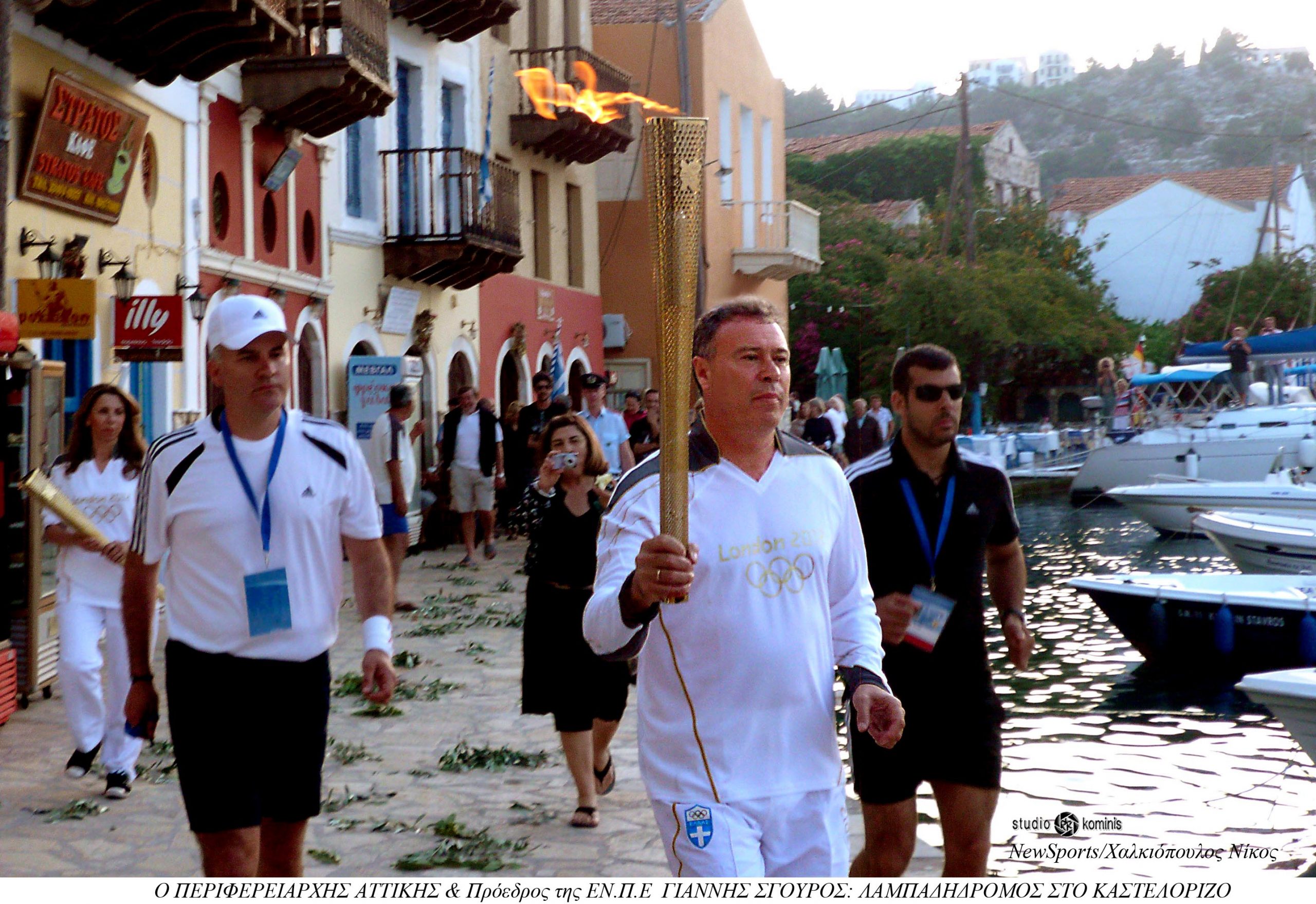 Ένας από τους «κρίκους» της παγκόσμιας αλυσίδας στο ταξίδι της Ιερής Ολυμπιακής Φλόγας για τους Ολυμπιακούς Αγώνες «Λονδίνο 2012» στις πέντε ηπείρους ήταν και ο Περιφερειάρχης Αττικής, Πρόεδρος της ΕΝ.Π.Ε. και μέλος της Ελληνικής Ολυμπιακής Επιτροπής, Γιάννης Σγουρός, ο οποίος μαζί με τον Πρόεδρο της Ελληνικής Ολυμπιακής Επιτροπής, Σπύρο Καπράλο, μετέφεραν το σύμβολο της ειρήνης και της συναδέλφωσης, για πρώτη φορά, στο ακριτικό Καστελλόριζο.
