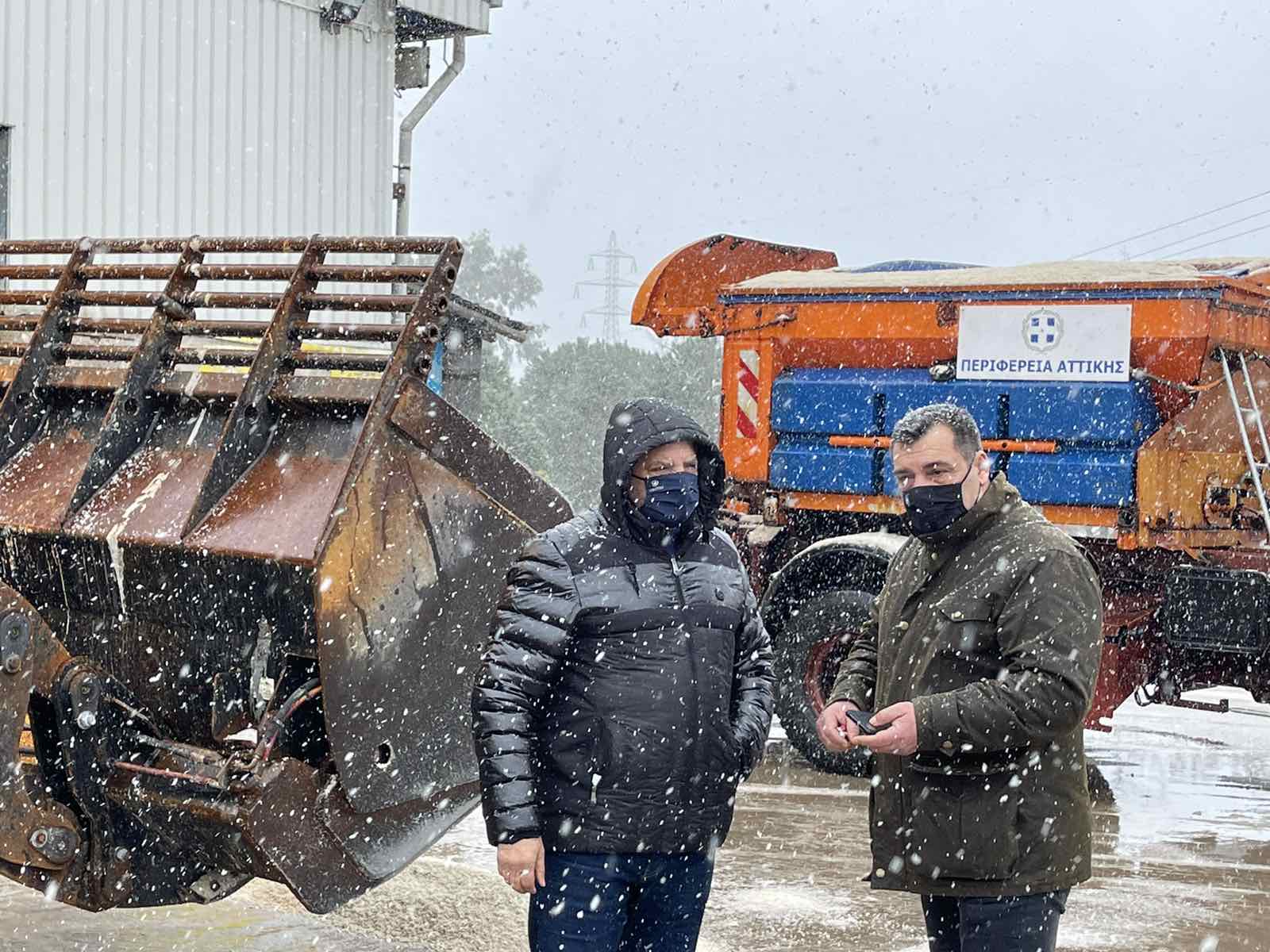 Σύμφωνα με την ενημέρωση του Περιφερειάρχη από τον Αντιπεριφερειάρχη Β. Κόκκαλη και τον συντονιστή της Πολιτικής Προστασίας της ΠεριφέρειαςΝ. Σταθόπουλο, η Περιφέρεια Αττικής έχει διαθέσει 38 εκχιονιστικά μηχανήματα, 8 χωματουργικά μηχανήματα και αλατιέρες που ρίχνουν καθ’ όλη τη διάρκεια της κακοκαιρίας αλάτι σε δρόμους που συνεχίζεται η χιονόπτωση.