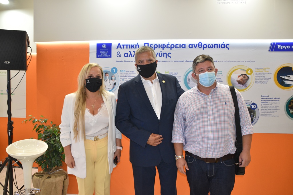 Από το πρωί βρισκόταν στους χώρους του Περιπτέρου ο Περιφερειάρχης Αττικής Γ. Πατούλης και υποδεχόταν τους επισκέπτες, έχοντας την ευκαιρία να τους ενημερώσει για το έργο της Περιφέρειας ενώ από τα videowallτου Περιπτέρου προβάλλονται συνεχώς βιντεοσκοπημένα αποσπάσματα από τις δράσεις της Περιφέρειας που έχουν κατά κύριο λόγο αναπτυξιακό και κοινωνικό πρόσημο, με έμφαση σε τομείς όπως η υγεία-διαχείριση πανδημίας- η ανακύκλωση αλλά και σε πρωτοβουλίες που σχετίζονται με την ενίσχυση κοινωνικών δομών.