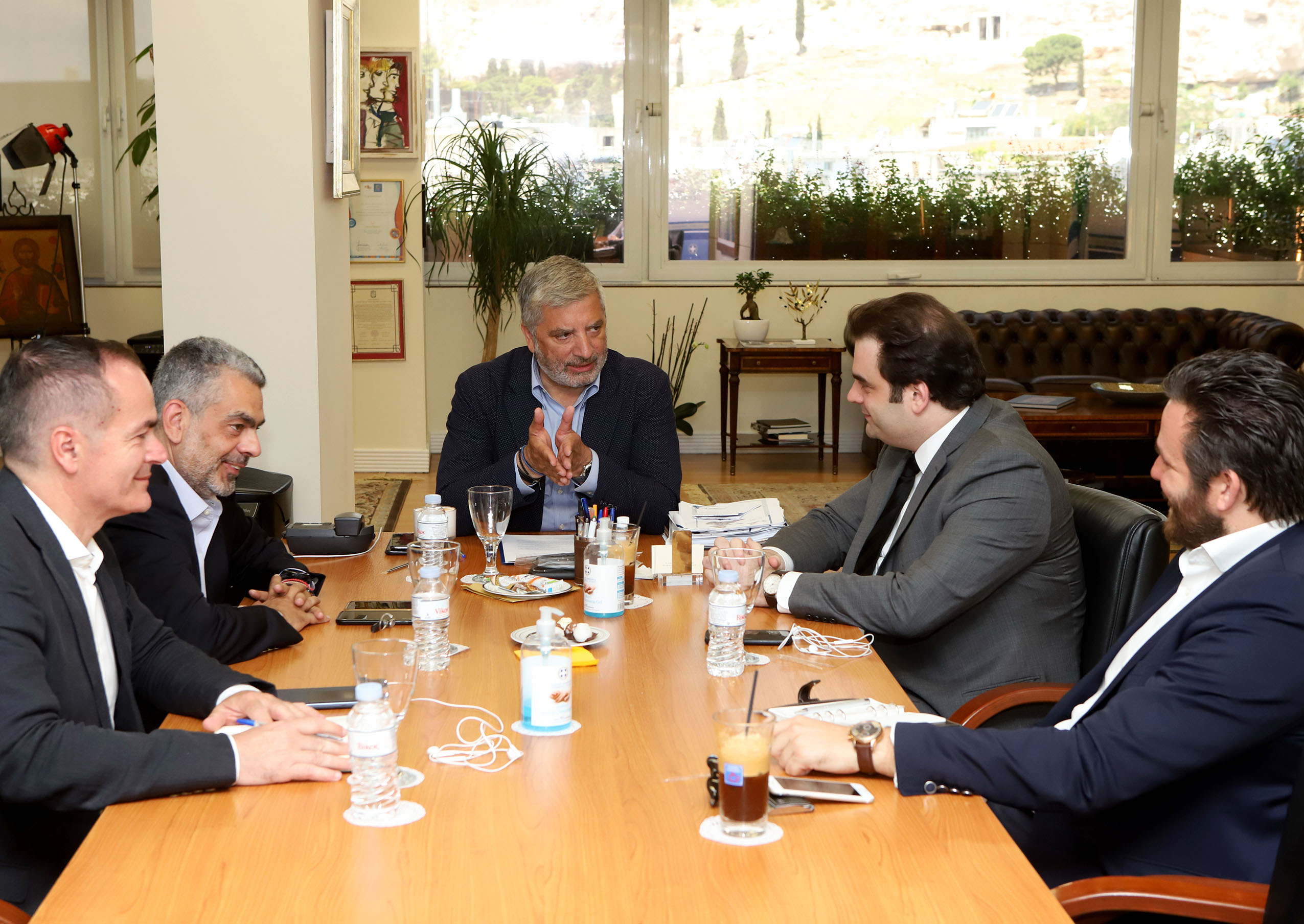 Στη συνάντηση μετείχαν επίσης ο Εκτελεστικός Γραμματέας της Περιφέρειας Ι. Σελίμης και ο Διευθυντής του υπουργού Ν. Δημάκης.