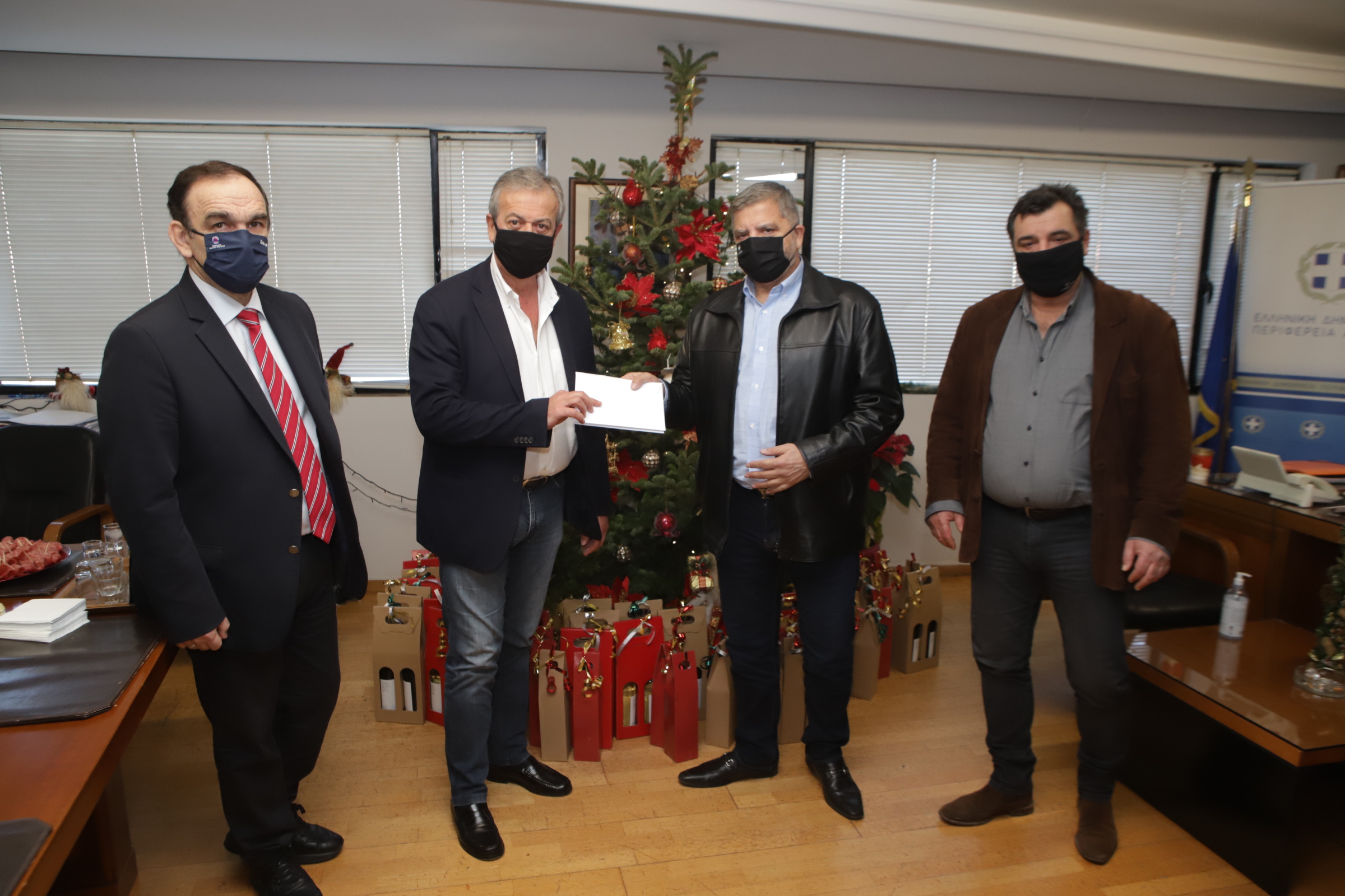 Στο πλαίσιο των συναντήσεων ο Περιφερειάρχης παρέδωσε στον Πρόεδρο των εργαζομένων Γ. Ζαχαρόπουλο, δωροεπιταγές καθώς και χριστουγεννιάτικα δώρα για τους 330 εργαζόμενους του ΕΔΣΝΑ, ως ένδειξη ευχαριστίας για το σημαντικό έργο που προσφέρουν καθημερινά στην Αττική και τους πολίτες της. Οι δωροεπιταγές διασφαλίστηκαν από δωρεές χορηγών.
