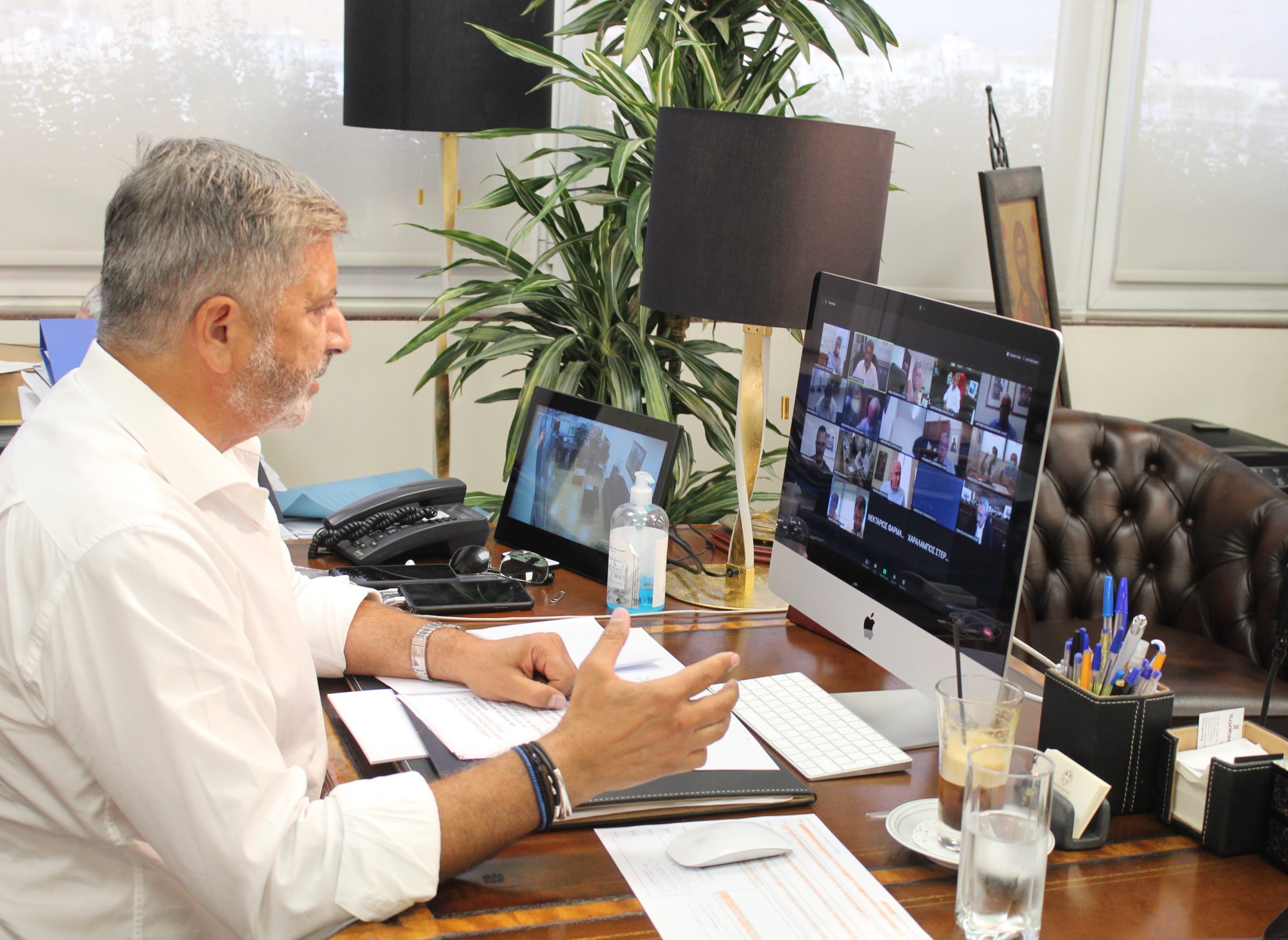 thlemeetΣτη σύσκεψη της Ένωσης Περιφερειών Ελλάδος με τον Υπουργό Πολιτικής Προστασίας κ. Νίκο Χαρδαλιά και τον πρόεδρο του ΕΟΔΥ κ. Παναγιώτη Αρκουμανέα συμμετείχε χθες το μεσημέρι ο Περιφερειάρχης Αττικής, αντιπρόεδρος και Τομεάρχης Υγείας της ΕΝΠΕ κ. Γιώργος Πατούλης, όπου συζητήθηκαν οι καλές πρακτικές, τα τρέχοντα και επείγοντα προβλήματα και τα ζητούμενα στην διαχείριση της Υγειονομικής κρίσης κατά τους μήνες που έρχονται, σε συντονισμό των Περιφερειών με την Κυβέρνηση και ιδιαίτερα με τον ΕΟΔΥ και  το Υπουργείο Πολιτικής Προστασίας.