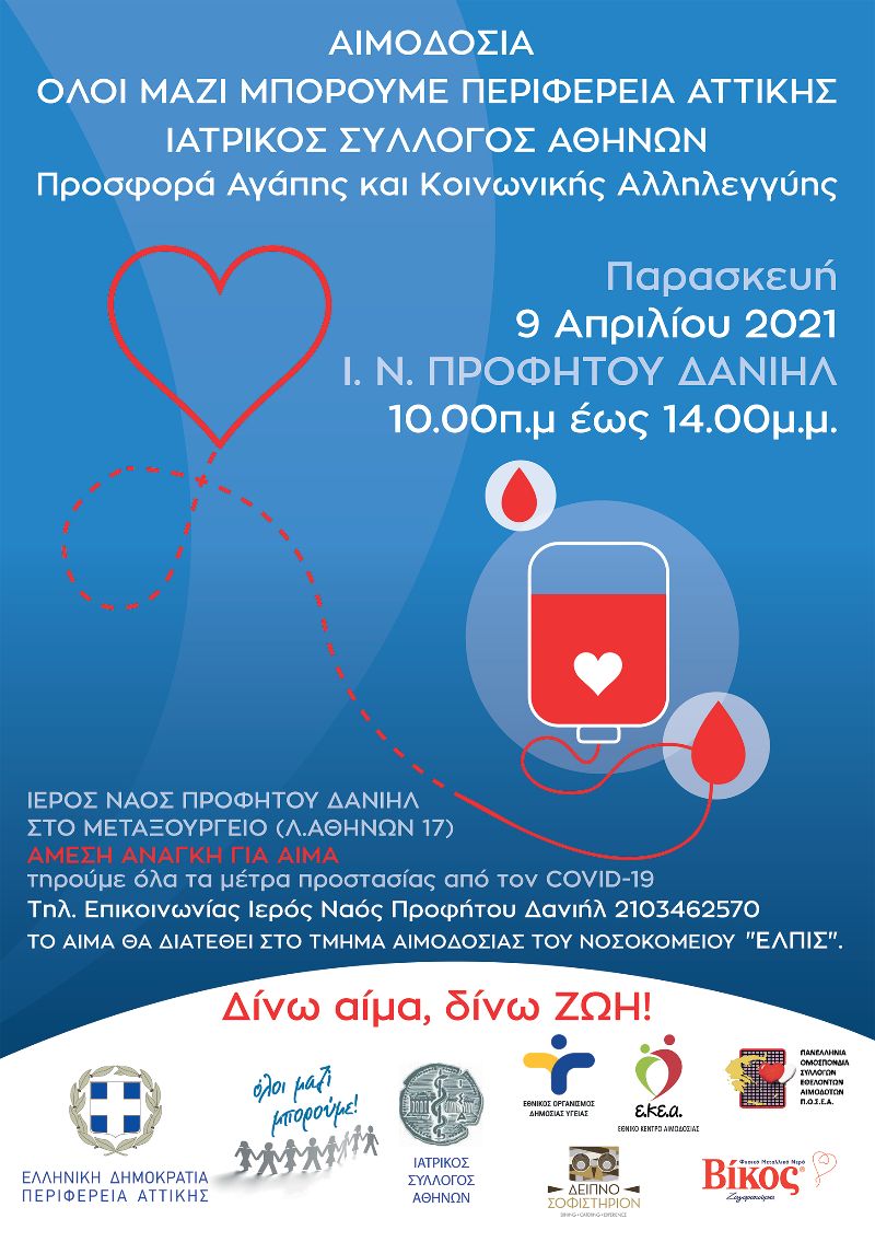 Η Περιφέρεια Αττικής σε συνεργασία με το «Όλοι Μαζί Μπορούμε», τον ΙΣΑ και την Ομοσπονδία Ιππασίας, διοργανώνουν το Σάββατο 22 Μαΐου δράση Εθελοντικής Αιμοδοσίας για τη στήριξη των αναγκών του Νοσοκομείου Παίδων «Η ΑΓΙΑ ΣΟΦΙΑ».