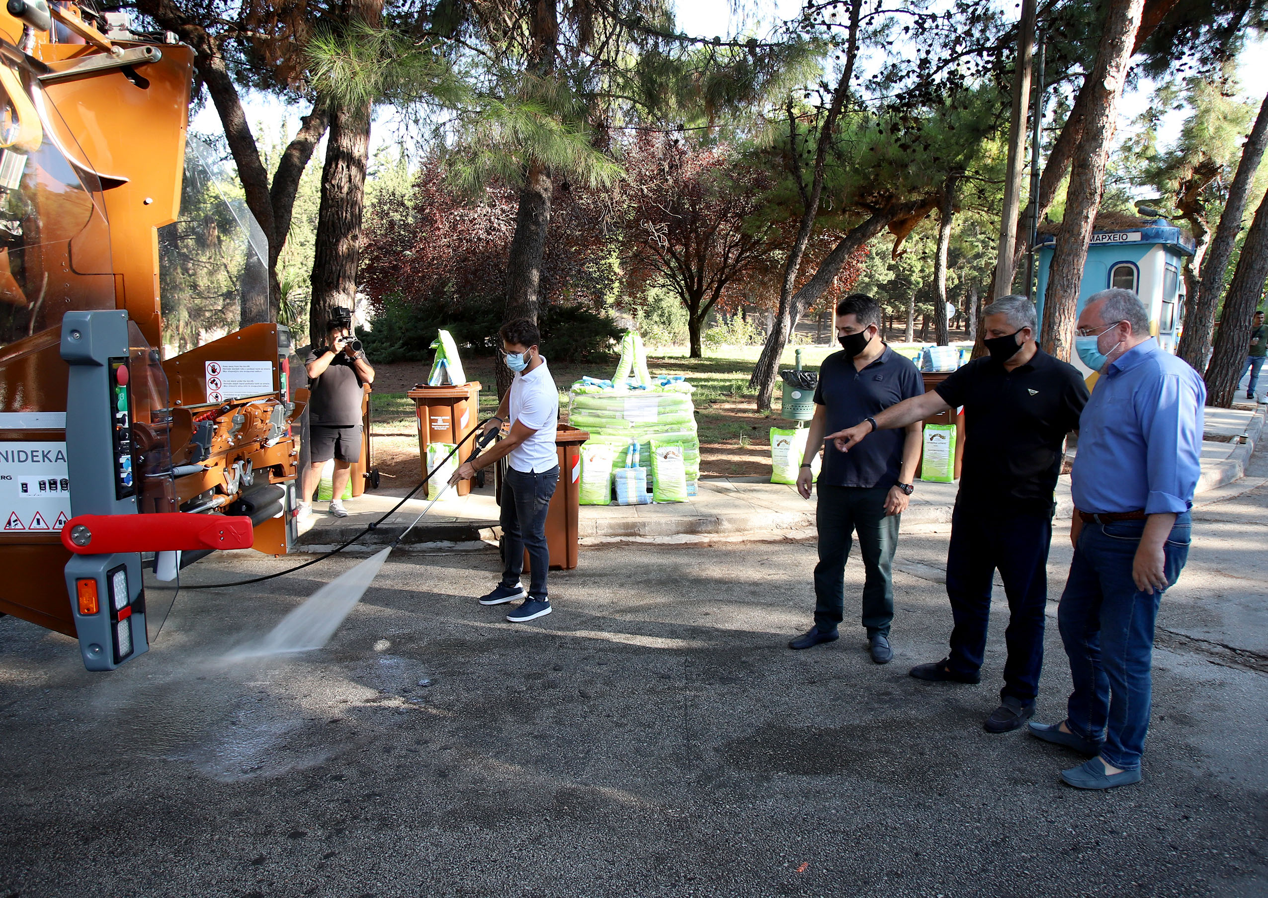 IMG 5783Στο πλαίσιο της εφαρμογής του προγράμματος της Περιφέρειας Αττικής για την ενίσχυση της ανακύκλωσης και τη διαχείριση των οργανικών αποβλήτων με τη συνεργασία των 66 Δήμων της Αττικής, ο Περιφερειάρχης Αττικής Γ. Πατούλης, παρέδωσε χθες στον Δήμαρχο Καισαριανής Χ. Βοσκόπουλο, ένα σύγχρονο απορριμματοφόρο, 50 καφέ κάδους συλλογής βιοαποβλήτων και 50 κυτία εσωτερικής ανακύκλωσης.