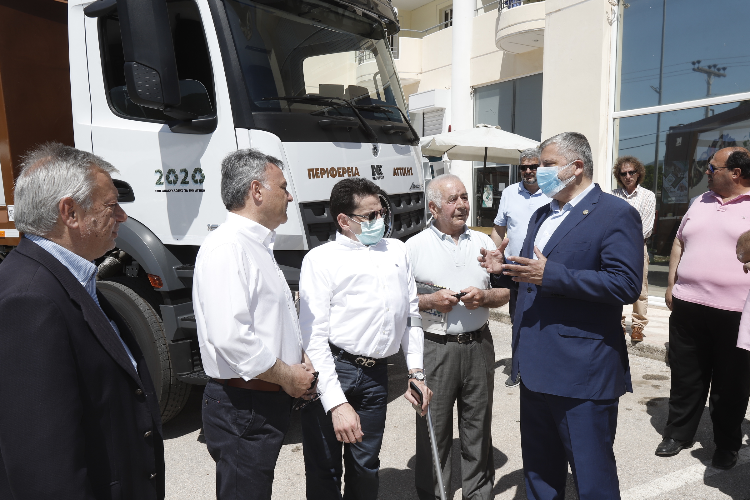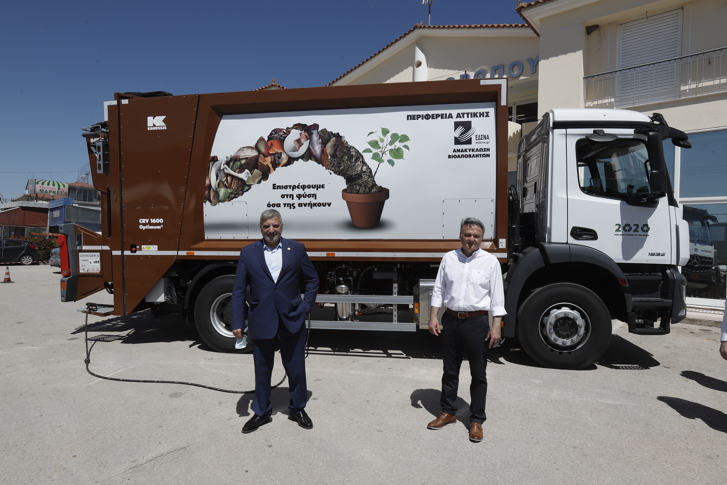 Στο πλαίσιο του στοχευμένου προγράμματος που υλοποιεί η Περιφέρεια με στόχο τη διάδοση και ενίσχυση της ανακύκλωσης σε όλη την Αττική, ο Περιφερειάρχης Αττικής Γ. Πατούλης παρέδωσε σήμερα απορριμματοφόρo υψηλής τεχνολογίας και 90 καφέ κάδους για τη συλλογή οργανικών αποβλήτων στον Δήμαρχο Ωρωπού Γ. Γιασημάκη.