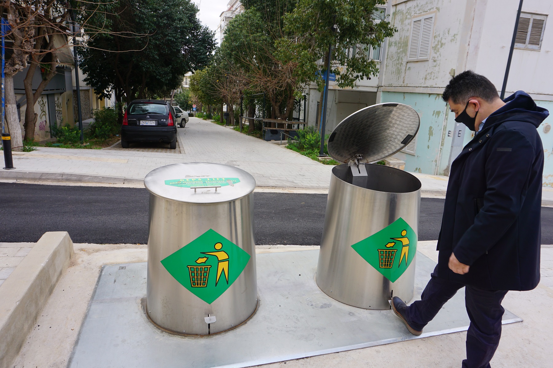 – Την τοποθέτηση υπόγειων κάδων απορριμμάτων.