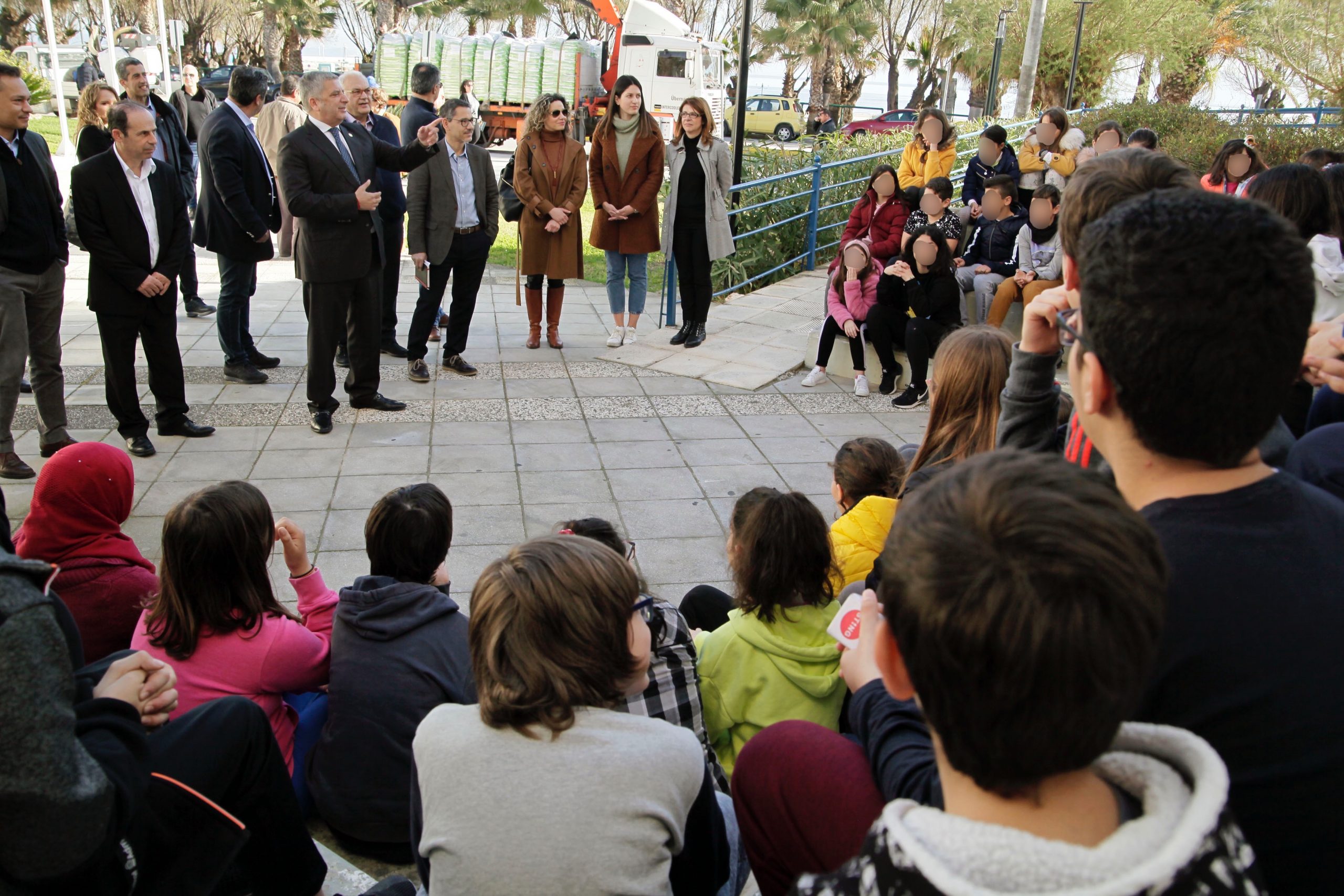 Ο κ. Πατούλης συνεχάρη τους μαθητές των σχολείων και τους εκπαιδευτικούς για την ενεργό συμμετοχή τους σε δράσεις που στοχεύουν στην προστασία του περιβάλλοντος και την ανάπλαση περιοχών που υπέστησαν φυσικές καταστροφές και συζήτησε μαζί τους για τα οφέλη των αναδασώσεων και της ανακύκλωσης.
