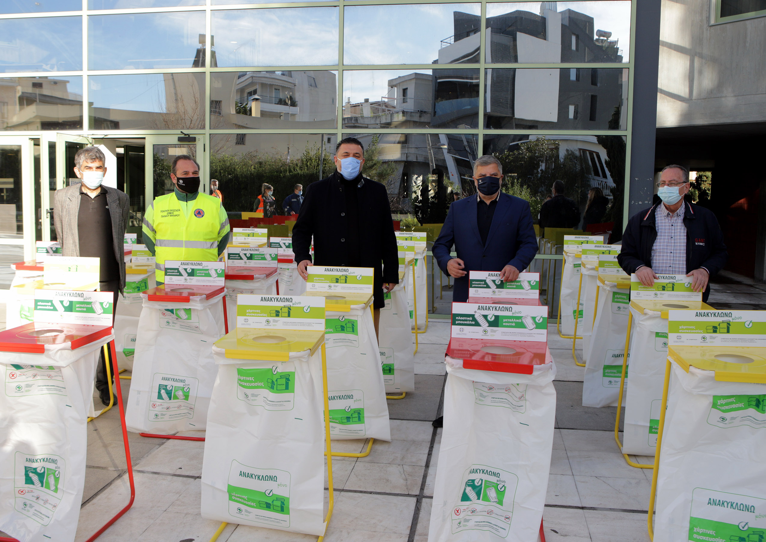 Στο πλαίσιο του προγράμματος που υλοποιεί η Περιφέρεια με στόχο την ενίσχυση της ανακύκλωσης στην Αττική, ο Περιφερειάρχης Γ. Πατούλης παρέδωσε σήμερα κάδους εσωτερικής ανακύκλωσης στο Δημαρχείο Π. Φαλήρου, για χωριστή συλλογή πλαστικών μεταλλικών και χάρτινων συσκευασιών.