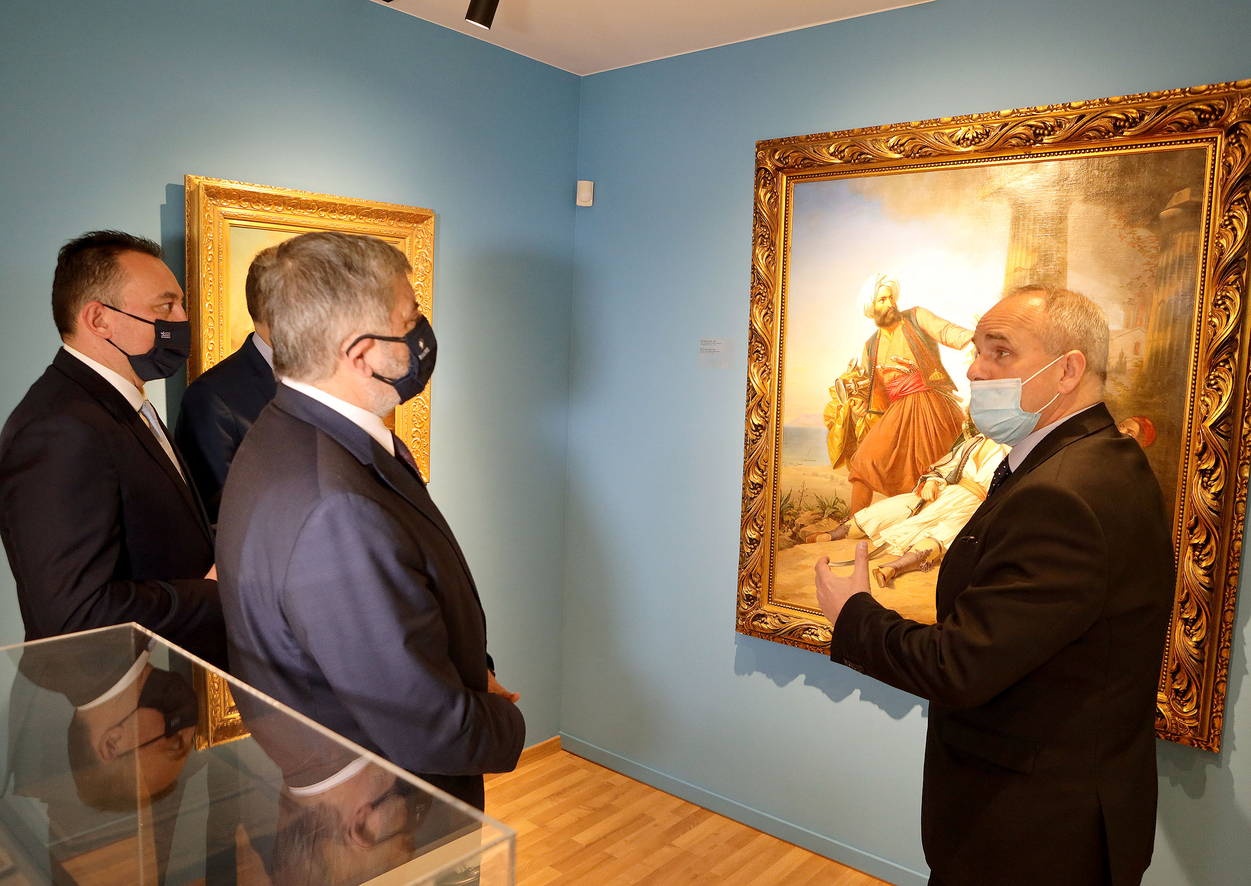 Ο Πρόεδρος της Εταιρίας για τον Ελληνισμό και τον Φιλελληνισμό και ιδρυτής του μουσείου, Κωνσταντίνος Βελέντζας, ξενάγησε τους προσκεκλημένους στις αίθουσες του πρώτου και μοναδικού θεματικού μουσείου στην Ελλάδα, αφιερωμένου στους Φιλέλληνες. Στη συλλογή του περιλαμβάνονται περισσότερα από 2.500 αντικείμενα φιλελληνικής τέχνης, πίνακες, βιβλία, έγραφα μεγάλης ιστορικής αξίας, κλπ. που προβάλλουν την ιστορία του Φιλελληνισμού από την Αναγέννηση έως σήμερα. Μεταξύ άλλων, το Μουσείο διαθέτει τη μεγαλύτερη διεθνώς συλλογή έργων τέχνης σχετικών με τον λόρδο Βύρωνα και προσωπικών του αντικειμένων, ενώ στον τελευταίο όροφο φιλοξενείται θεματική συλλογή με πορτρέτα, έγγραφα και προσωπικά αντικείμενα Αμερικανών φιλελλήνων.