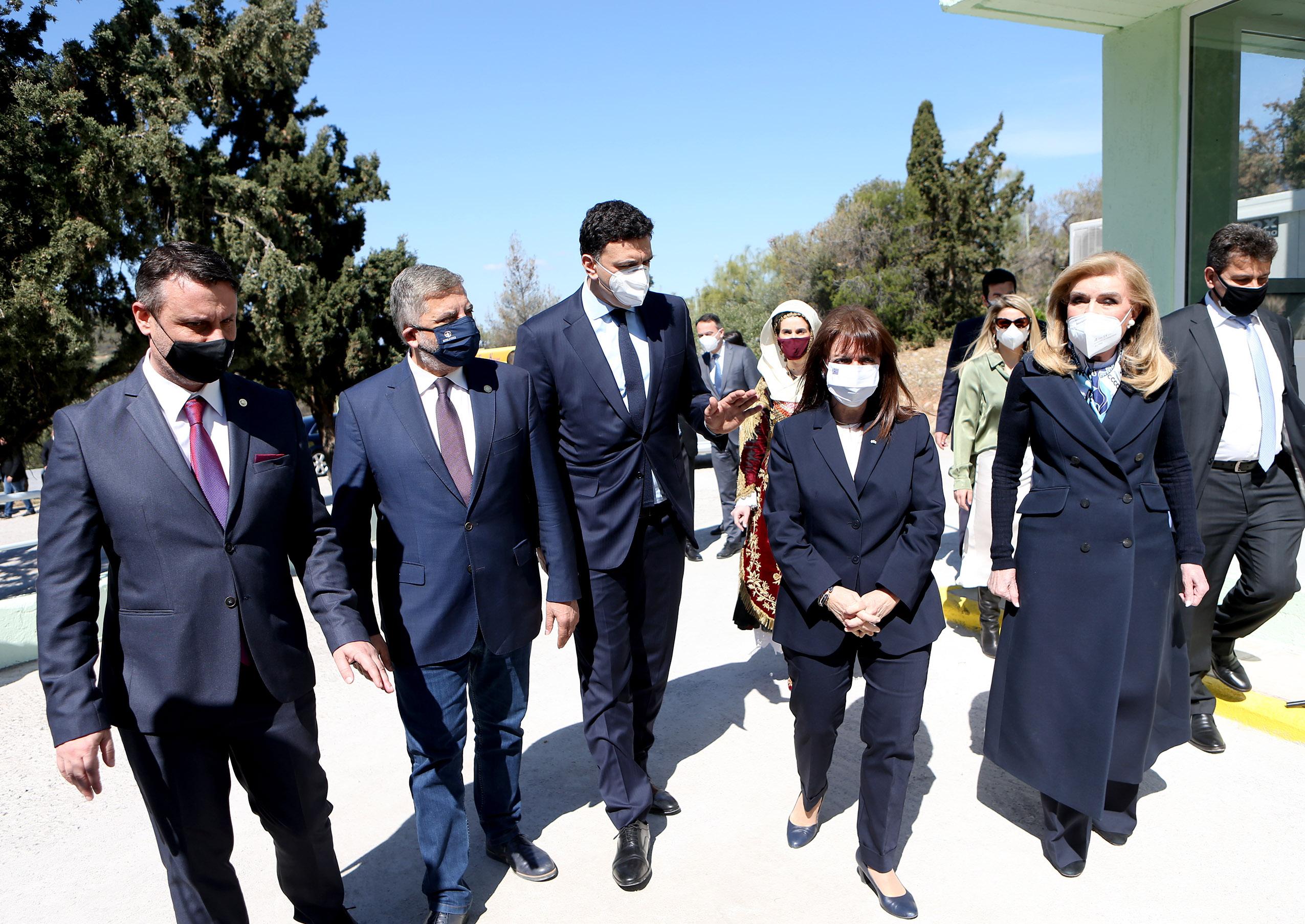 Στα εγκαίνια της νέας ανακαινισμένης πτέρυγας του Κέντρου Υγείας Σαλαμίνας, παρουσία της Προέδρου της Δημοκρατίας Κατερίνας Σακελλαροπούλου, του Υπουργού Υγείας Βασίλη Kικίλια και της Προέδρου του Σωματείου “ΕΛΠΙΔΑ» Μαριάννας Βαρδινογιάννη, ο Περιφερειάρχης Αττικής Γ. Πατούλης