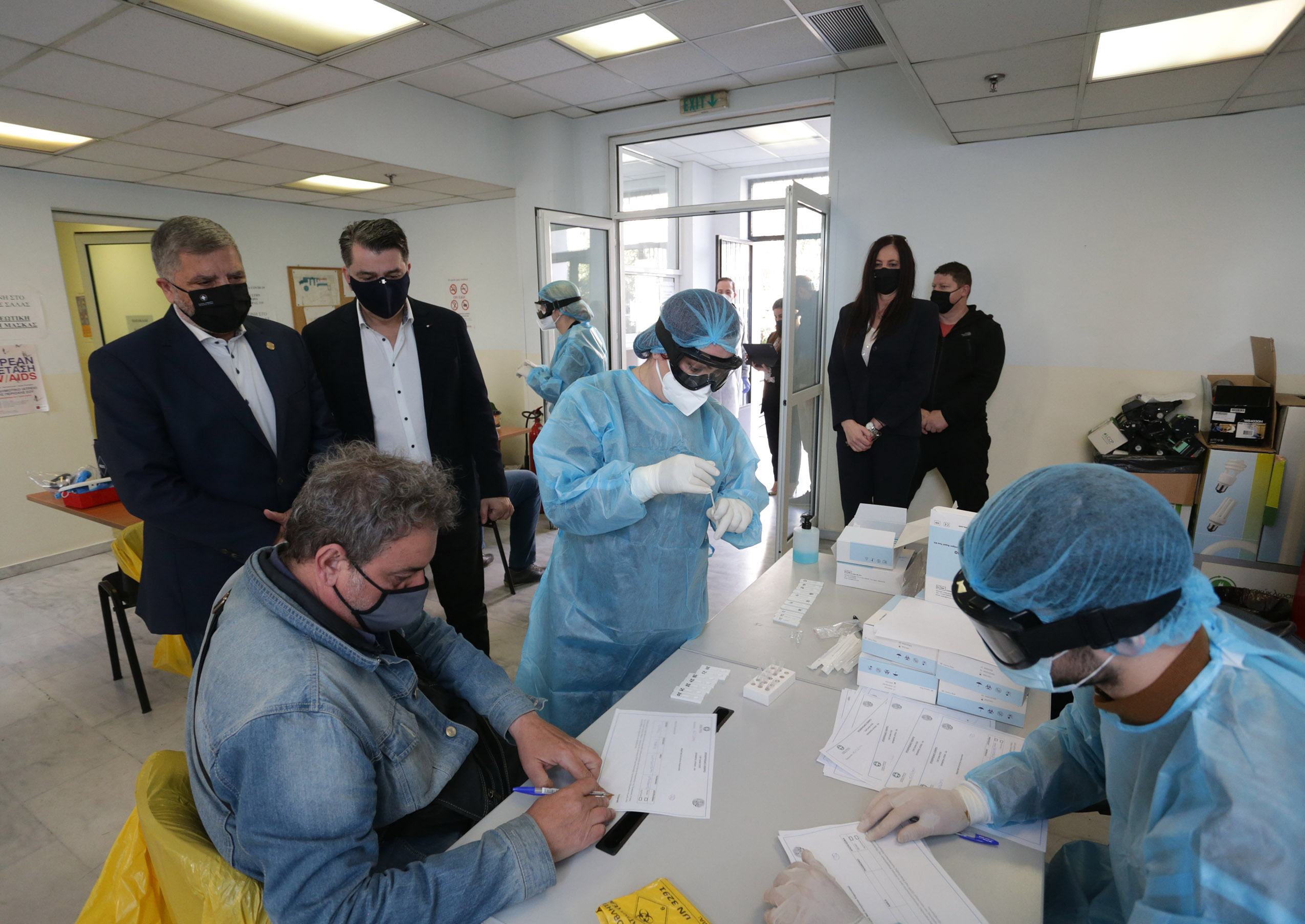Τρίτη μέρα σήμερα της Δράσης της Περιφέρειας Αττικής και τα εξειδικευμένα κλιμάκια της Περιφέρειας και του ΙΣΑ, παρουσία του Περιφερειάρχη Αττικής Γ. Πατούλη διενήργησαν 589 δειγματοληπτικά ρινοφαρυγγικά τεστ, με τη μέθοδο της ταχείας διαδικασίας Rapid test, σε πολίτες και εργαζόμενους στη Γενική Διεύθυνση Δημόσιας Υγείας και Κοινωνικής Μέριμνας της Περιφέρειας Αττικής και στο Δημαρχείο Καισαριανής.