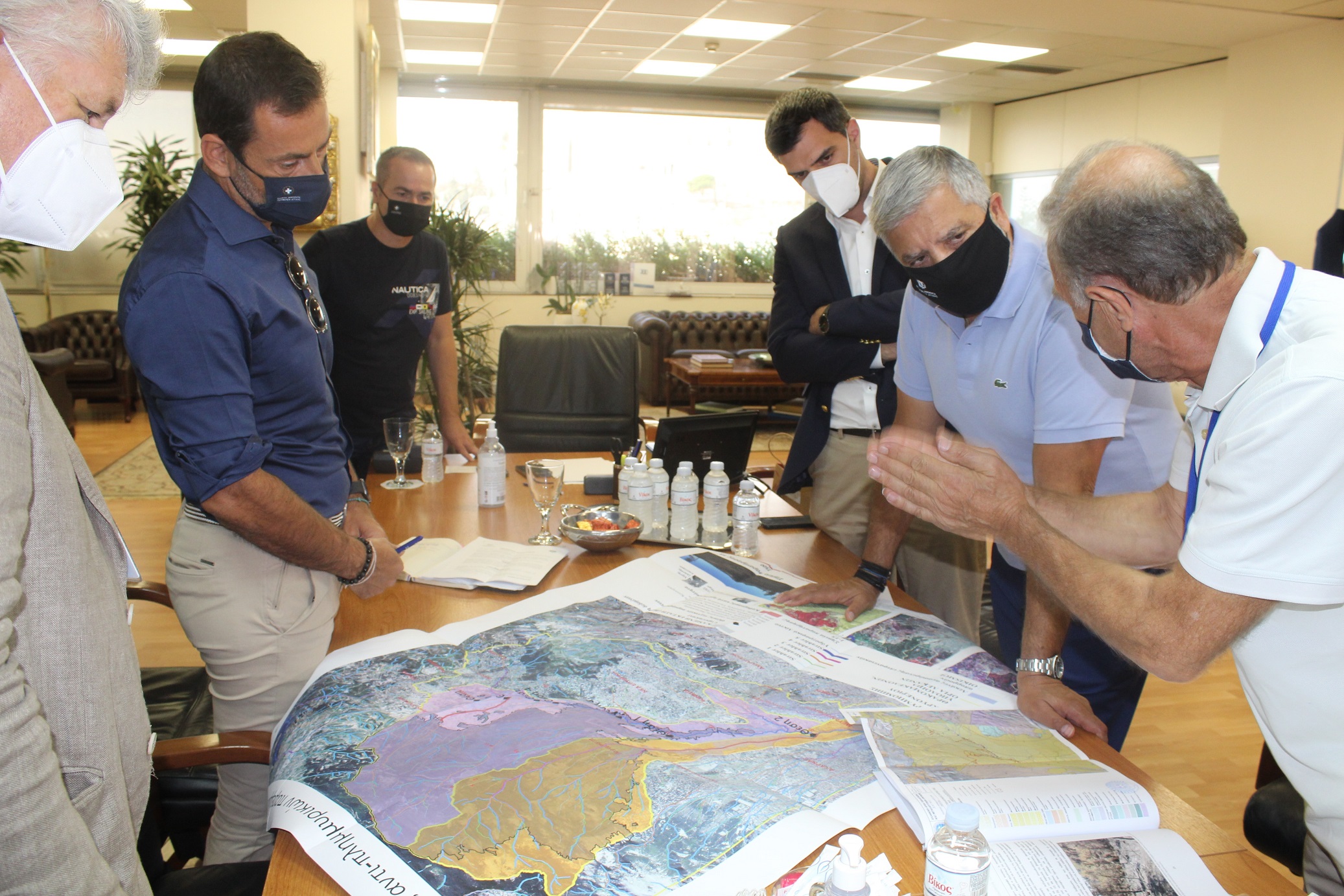 Στο πλαίσιο των πρωτοβουλιών που έχει ξεκινήσει η Περιφέρεια Αττικής, προκειμένου να διερευνηθούν, άμεσα, οι καλύτεροι δυνατοί τρόποι αντιμετώπισης των συνεπειών από τις καταστροφικές πυρκαγιές του Αυγούστου και να υλοποιηθούν οι αναγκαίες παρεμβάσεις στις πυρόπληκτες περιοχές, (χαρτογράφηση των κινδύνων, δυνατότητες άμεσης επέμβασης, κ.α.), πραγματοποιήθηκε συνάντηση του Περιφερειάρχη Αττικής Γ. Πατούλη με κλιμάκιο της Αρχής Γεωλογικών και Μεταλλευτικών Ερευνών (Ε.Α.Γ.Μ.Ε.).