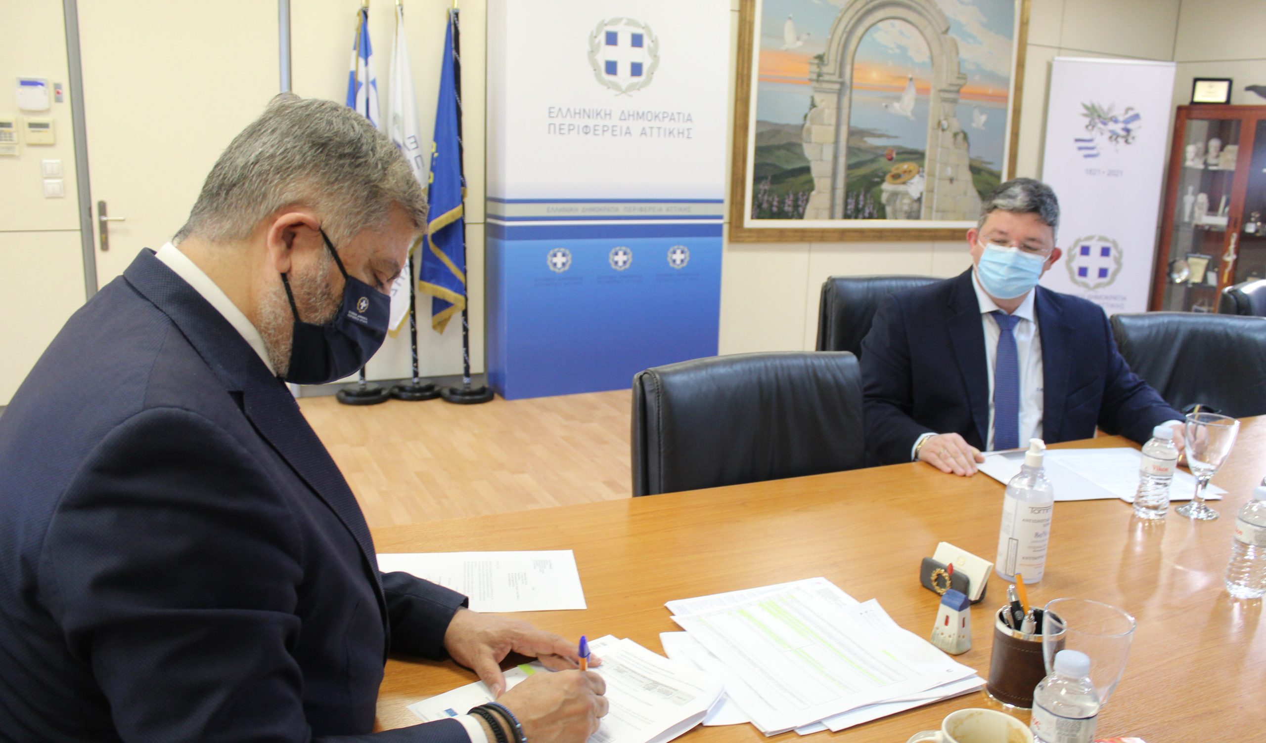 Στη συνάντηση με αφορμή την υπογραφή, συμμετείχαν επίσης ο Προϊστάμενος της Διαχειριστικής Αρχής της Περιφέρειας Δ. Δρόσης και ο Διευθυντής Τεχνικών Έργων της Περιφέρειας Α. Καλογερόπουλος.