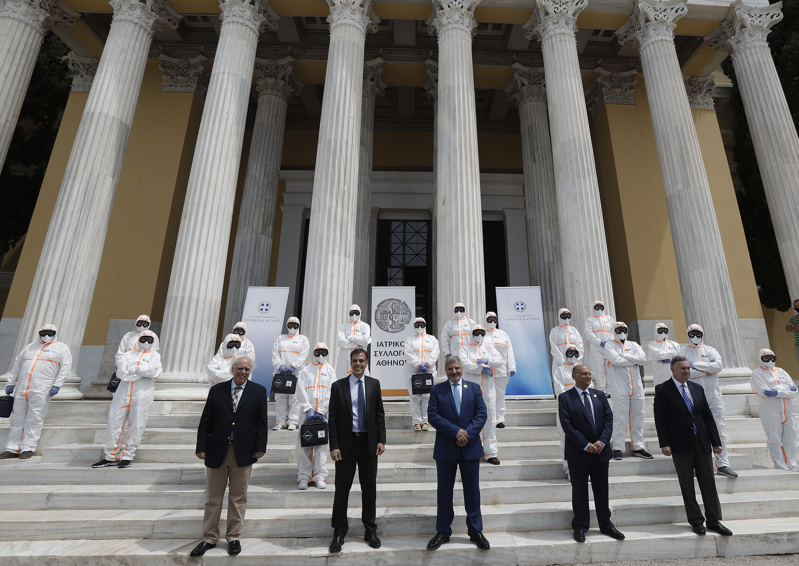 Η Περιφέρεια Αττικής σε συνεργασία με τον Ιατρικό Σύλλογο Αθηνών επιθυμούν να συνδράμουν εξειδικευμένα και ενισχυτικά το έργο του ΕΟΔΥ και συγκεκριμένα το Πρόγραμμα ΚΟΜΥ Ειδικού Σκοπού που χρηματοδοτείται στο πλαίσιο της Διοικητικής Μεταρρύθμισης 2014 – 2020 για την ιατρική φροντίδα και συλλογή βιολογικού υλικού κατ΄ οίκον για τον κορωνοϊό. Η Περιφέρεια και ο ΙΣΑ ενισχύουν τις Κινητές Ομάδες ΕΟΔΥ με 8 εξειδικευμένες κινητές ομάδες ιατρών και νοσηλευτών, τις οποίες παρουσίασε σήμερα ο Περιφερειάρχης Αττικής και Πρόεδρος του ΙΣΑ Γ. Πατούλης, στον προαύλιο χώρο του Ζαππείου Μεγάρου.
