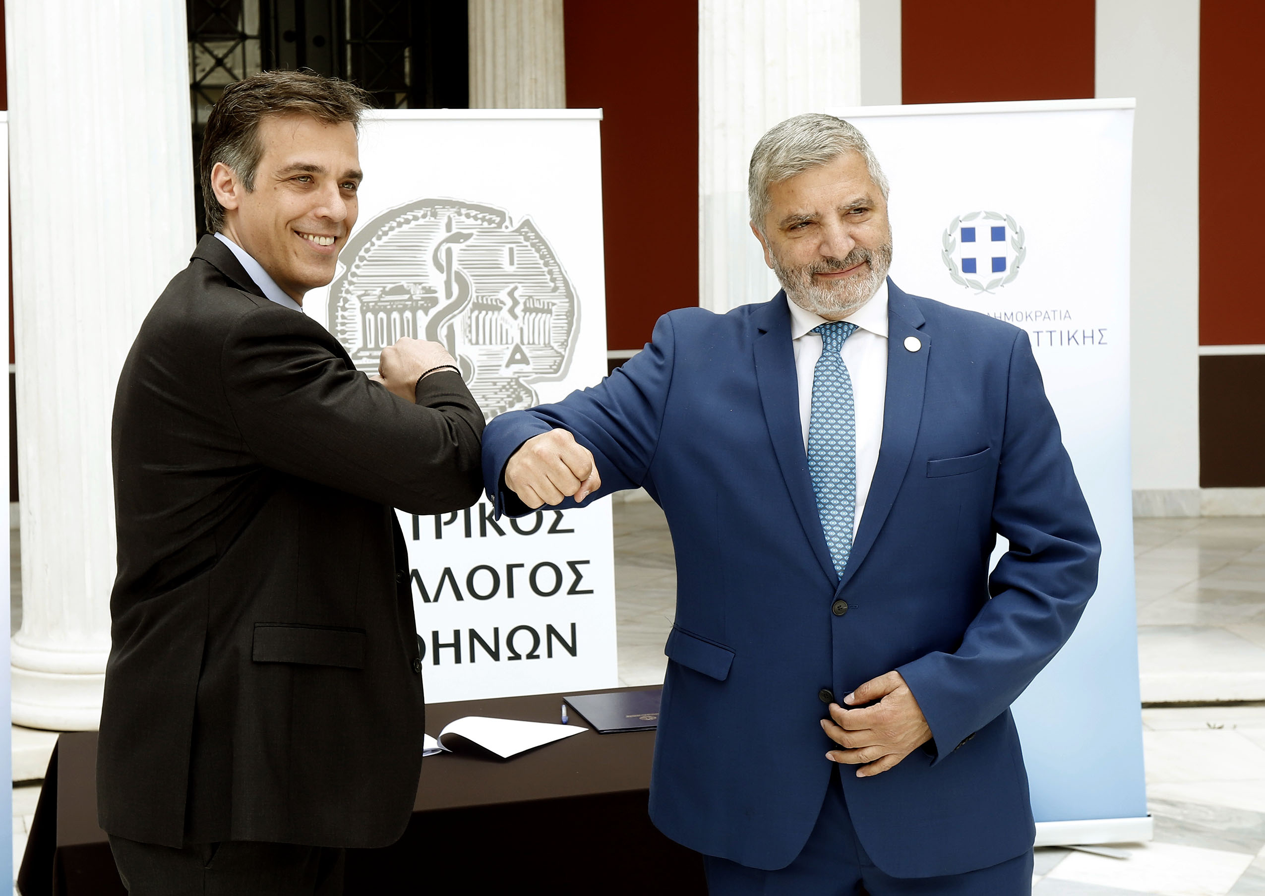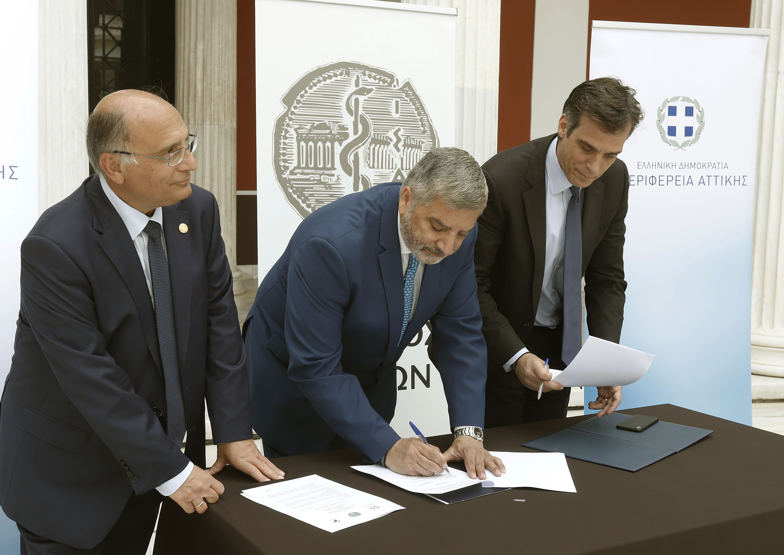 Στο πλαίσιο της εκδήλωσης ο Γ. Πατούλης και ο Πρόεδρος του ΕΟΔΥ Π. Αρκουμανέας υπέγραψαν Σύμφωνο που επικυρώνει τη συνεργασία Περιφέρειας Αττικής, Ιατρικού Συλλόγου Αθηνών και Εθνικού Οργανισμού Δημόσιας Υγείας.