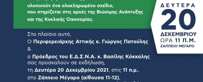 Υπεγράφησαν με τους αναδόχους οι Συμβάσεις για την προμήθεια εξοπλισμού ανακύκλωσης που θα διανεμηθεί δωρεάν στους Δήμους της ΑττικήςΓ. Πατούλης: «Περιφέρεια, ΕΔΣΝΑ και Δήμοι ενώσαμε δυνάμεις για να κάνουμε την Αττική, Πρώτη Περιφέρεια στην Ανακύκλωση» Ο Περιφερειάρχης Αττικής Γ. Πατούλης και ο Πρόεδρος του ΕΔΣΝΑ Β. Κόκκαλης υπέγραψαν σήμερα με τους αναδόχους, τις Συμβάσεις