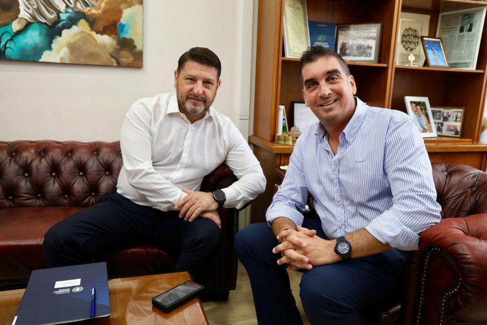 Συνάντηση εργασίας του Περιφερειάρχη Αττικής με τον Δήμαρχο Στέλιο Μαμαλάκη, στο επίκεντρο έργα της Περιφέρειας ύψους 4,85 εκατ. ευρώ   Ο Περιφερειάρχης Νίκος Χαρδαλιάς επισκέφθηκε τον Δήμο Αγίου Δημητρίου, στο πλαίσιο των περιοδειών που πραγματοποιεί και στους 66 Δήμους της Αττικής, όπου συναντήθηκε με τον Δήμαρχο Στέλιο Μαμαλάκη, με τον οποίο συζήτησαν για