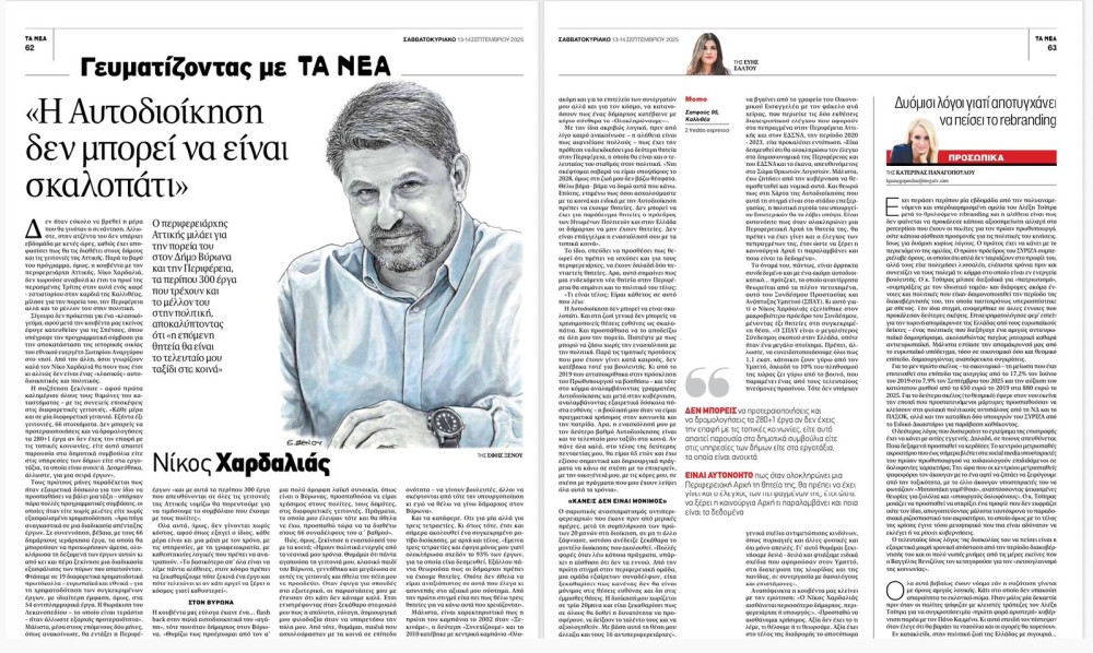 Συνέντευξη του Περιφερειάρχη Αττικής στη στήλη «Γευματίζοντας» της εφημερίδας ΤΑ ΝΕΑ και τη δημοσιογράφο Εύη Σαλτού Μία εφ’ όλης της ύλης συνέντευξη, παραχώρησε ο Περιφερειάρχης Αττικής Νίκος Χαρδαλιάς στη στήλη «Γευματίζοντας» της εφημερίδας ΤΑ ΝΕΑ και τη δημοσιογράφο Εύη Σαλτού.  Ο Περιφερειάρχης μίλησε για το καθημερινό του πρόγραμμα, τις προτεραιότητες της Περιφέρειας, την πορεία του