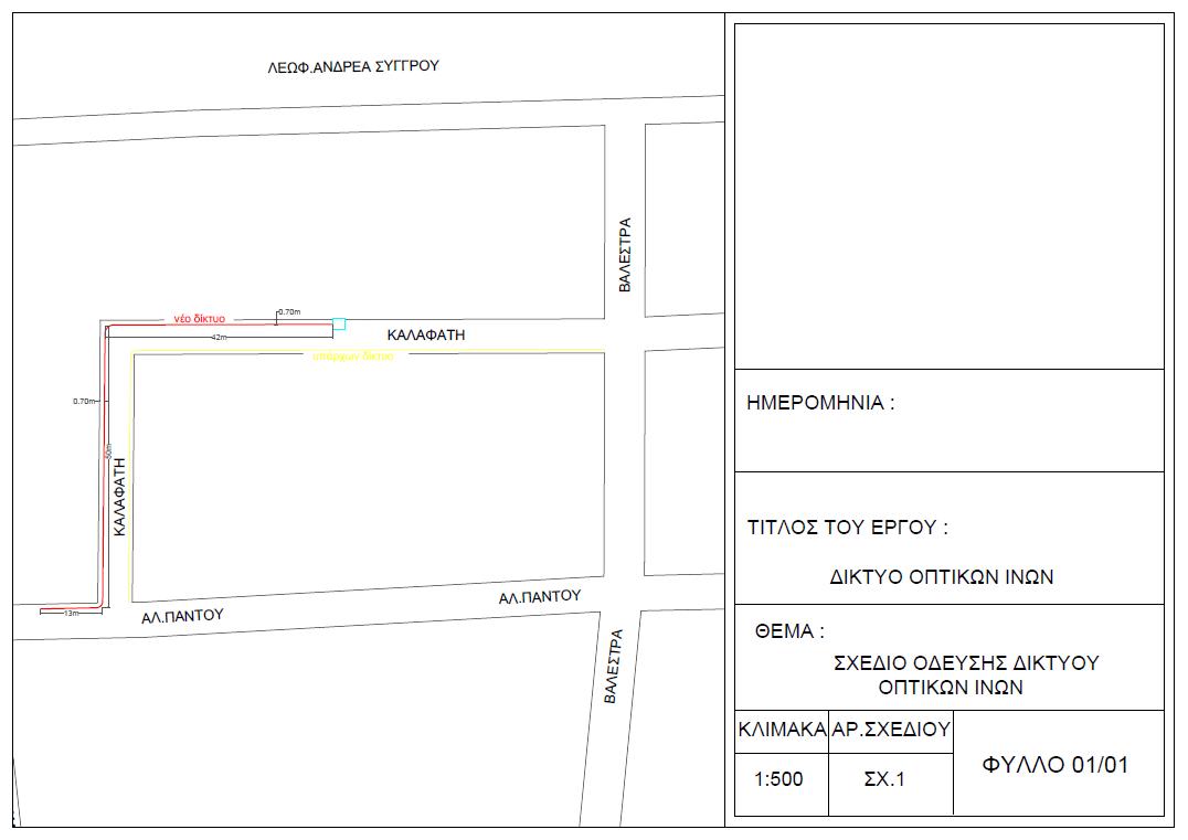 Στην Υπηρεσία μας κατατέθηκε Αίτηση Εργασιών Εκσκαφής από πάροχο δικτύου ηλεκτρονικών επικοινωνιών στο Δήμο Καλλιθέας.