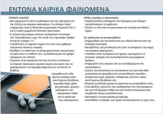 Οδηγίες προστασίας από έντονα καιρικά φαινόμενα
