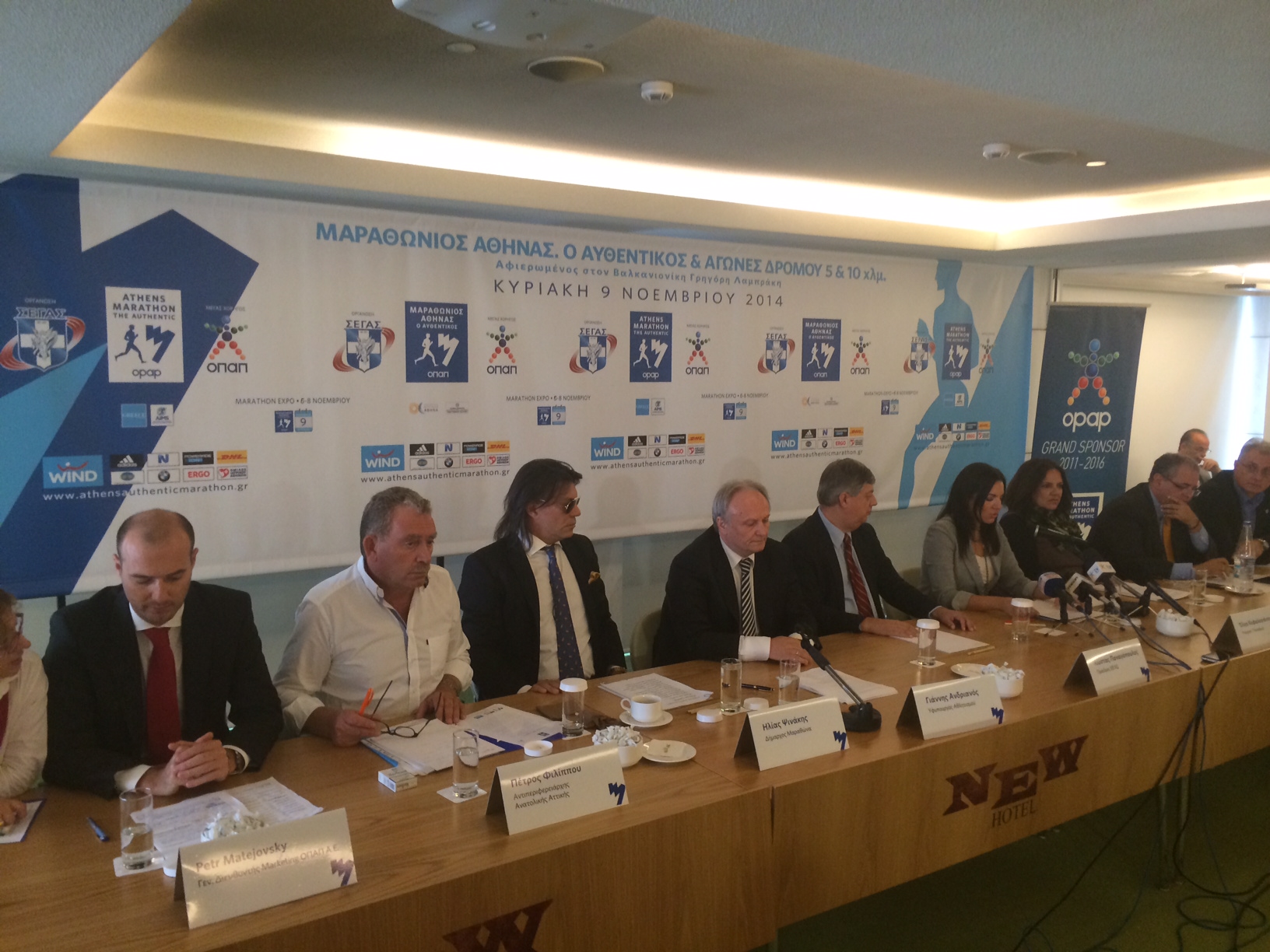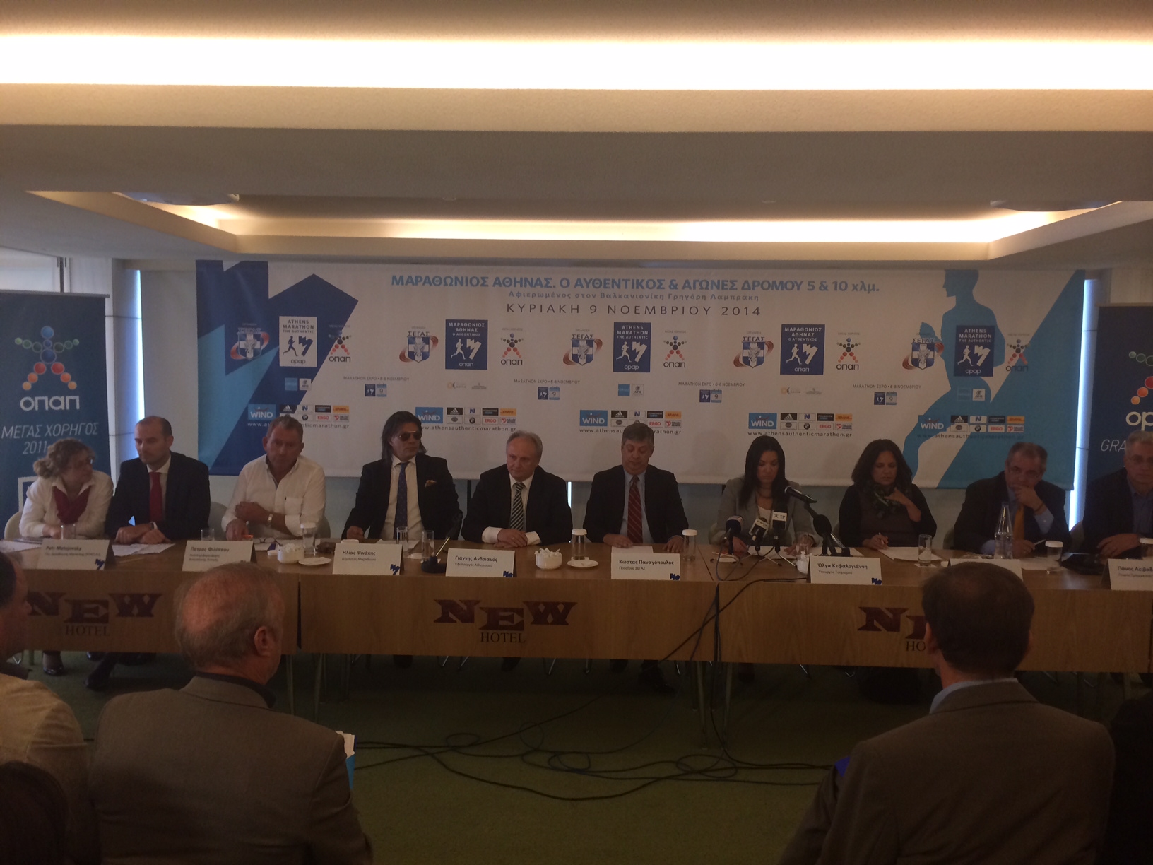 Καλεί δε όλους τους πολίτες της Αττικής να συμμετάσχουν με οποιονδήποτε τρόπο μπορούν τόσο στη μαραθώνια διαδρομή όσο και στις εκδηλώσεις που θα διοργανωθούν και παράλληλα όλους τους νέους να ενστερνιστούν τα πολλαπλά μηνύματα που εκπέμπει ο φετινός μαραθώνιος. Στη συνέντευξη τύπου συμμετείχαν ο Πρόεδρος του ΣΕΓΑΣ Κώστας Παναγόπουλος, η Υπουργός Τουρισμού Όλγα Κεφαλογιάννη, ο Υφυπουργός Αθλητισμού Γιάννης Ανδριανός, ο Γενικός Διευθυντής Marketing της ΟΠΑΠ ΑΕ (χορηγός του Μαραθωνίου) Petr Matejovsky, ο Δήμαρχος Μαραθώνα Ηλίας Ψινάκης, ο Γενικός Γραμματέας του ΕΟΤ Πάνος Λειβαδάς, ο Πρόεδρος της Οργανωτικής Επιτροπής του Μαραθωνίου Γιάννης Σταματόπουλος, ενώ τον Δήμαρχο Αθήνας Γιώργο Καμίνη εκπροσώπησε η Πρόεδρος του ΟΠΑΝΔΑ Νέλλη Παπαχελά.