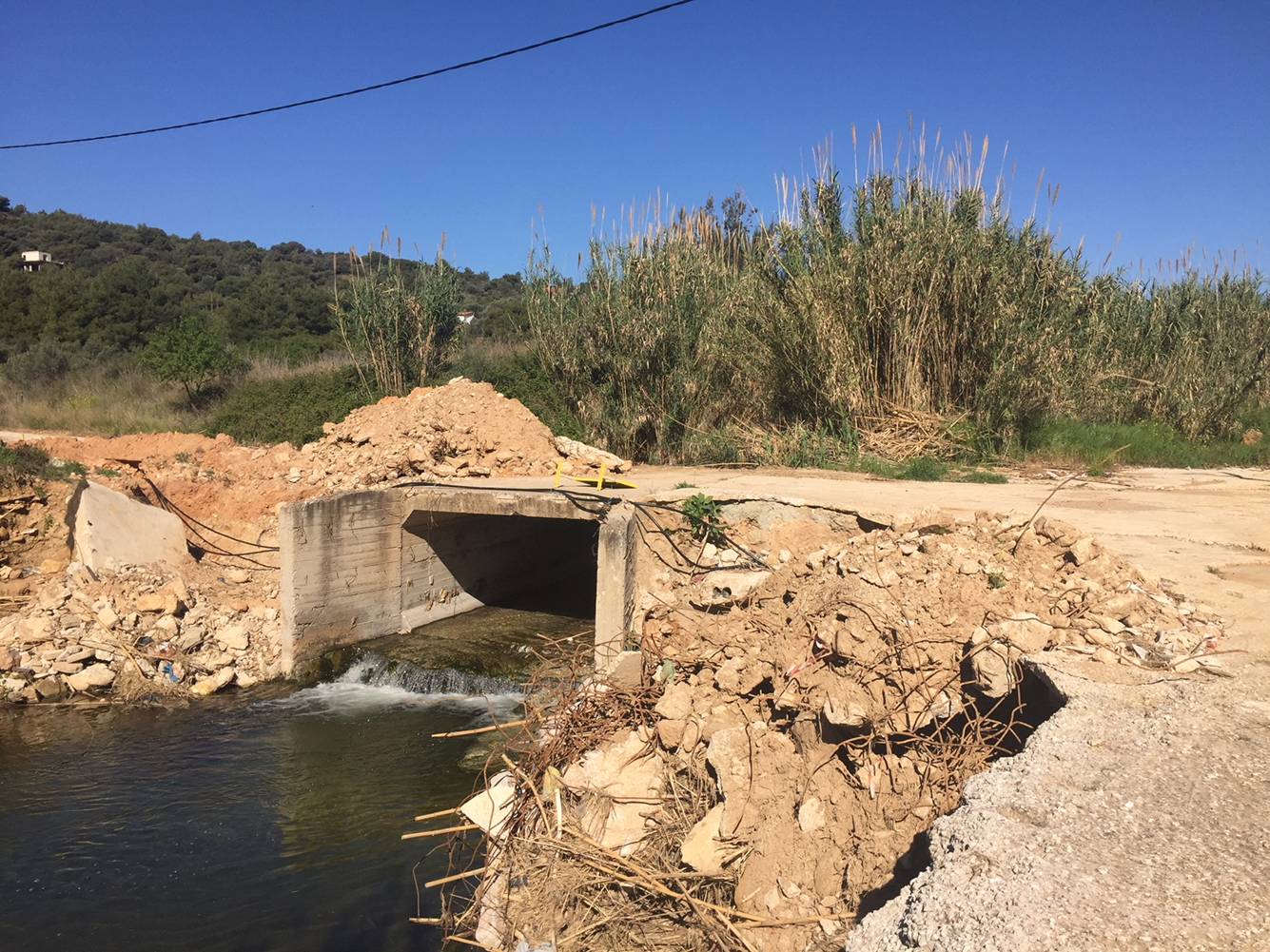 - Ορθογωνική διατομή με σκυρόδεμα και τοίχους αντιστήριξης αριστερά και δεξιά, όπου κρίνεται απαραίτητο