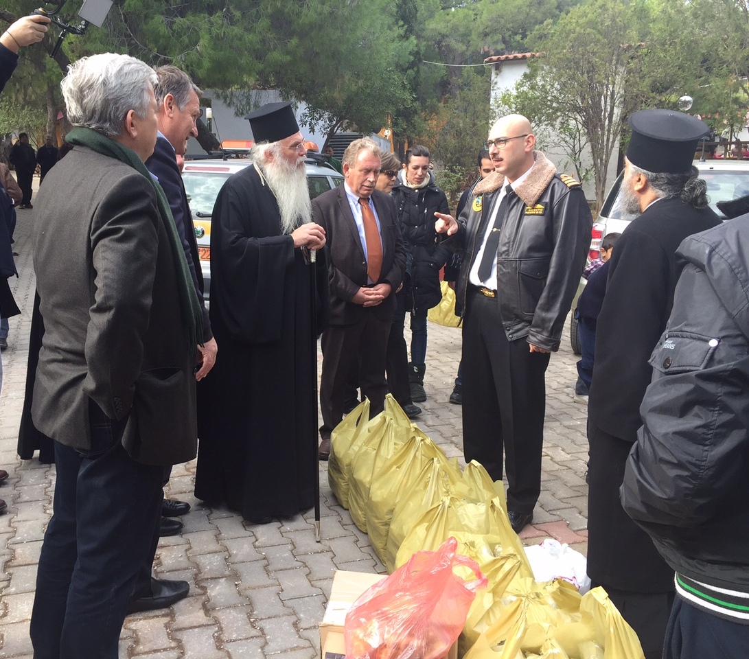 Στη συνέχεια, ακολούθησε επίσκεψη στο Κέντρο Φιλοξενίας Προσφύγων στο Λαύριο (κατασκηνώσεις Υπουργείου Αγροτικής Ανάπτυξης), όπου ο Σεβασμιώτατος Μητροπολίτης, ο Αντιπεριφερειάρχης Ανατολικής Αττικής και οι εκπρόσωποι της Δημοτικής Αρχής Λαυρεωτικής πρόσφεραν είδη πρώτης ανάγκης στους φιλοξενούμενους πρόσφυγες και συνομίλησαν μαζί τους αλλά και με τους υπεύθυνους του κέντρου για τα προβλήματα που αντιμετωπίζουν. Παράλληλα, συζήτησαν για τους τρόπους με τους οποίους θα μπορούσε η Ιερά Μητρόπολη Μεσογαίας και Λαυρεωτικής, η Περιφέρεια Αττικής και ο Δήμος Λαυρεωτικής να σταθούν στο πλευρό των προσφύγων διευκολύνοντας με κάθε πρόσφορο μέσο τις συνθήκες διαβίωσης τους στο κέντρο.