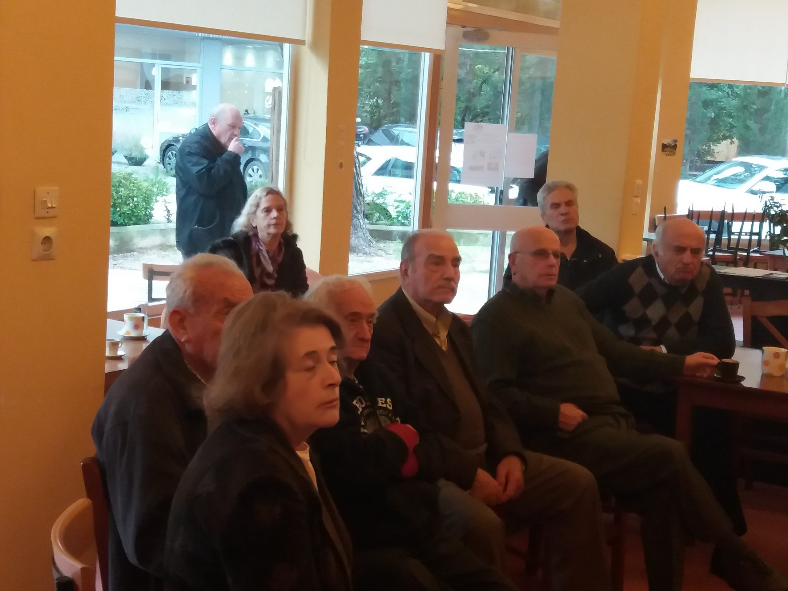 Τα στελέχη της υπηρεσίας (ιατρός και επισκέπτρια υγείας), ενημερώνουν τα μέλη για τα βασικά γνωρίσματα της νόσου, παραθέτουν τα συνηθέστερα συμπτώματά της, συστήνουν προληπτικές διαγνωστικές εξετάσεις και δίνουν ιδιαίτερο βάρος στους αναστρέψιμους παράγοντες κινδύνου (διατροφή, άσκηση, διακοπή καπνίσματος), οι οποίοι παίζουν σημαντικό ρόλο στην ποιότητα της ζωής των ηλικιωμένων, και τους δίνουν τη δυνατότητα να μπορούν να συμμετέχουν ενεργά στο οικογενειακό και κοινωνικό σύνολο. Στο τέλος ακολουθεί συζήτηση.