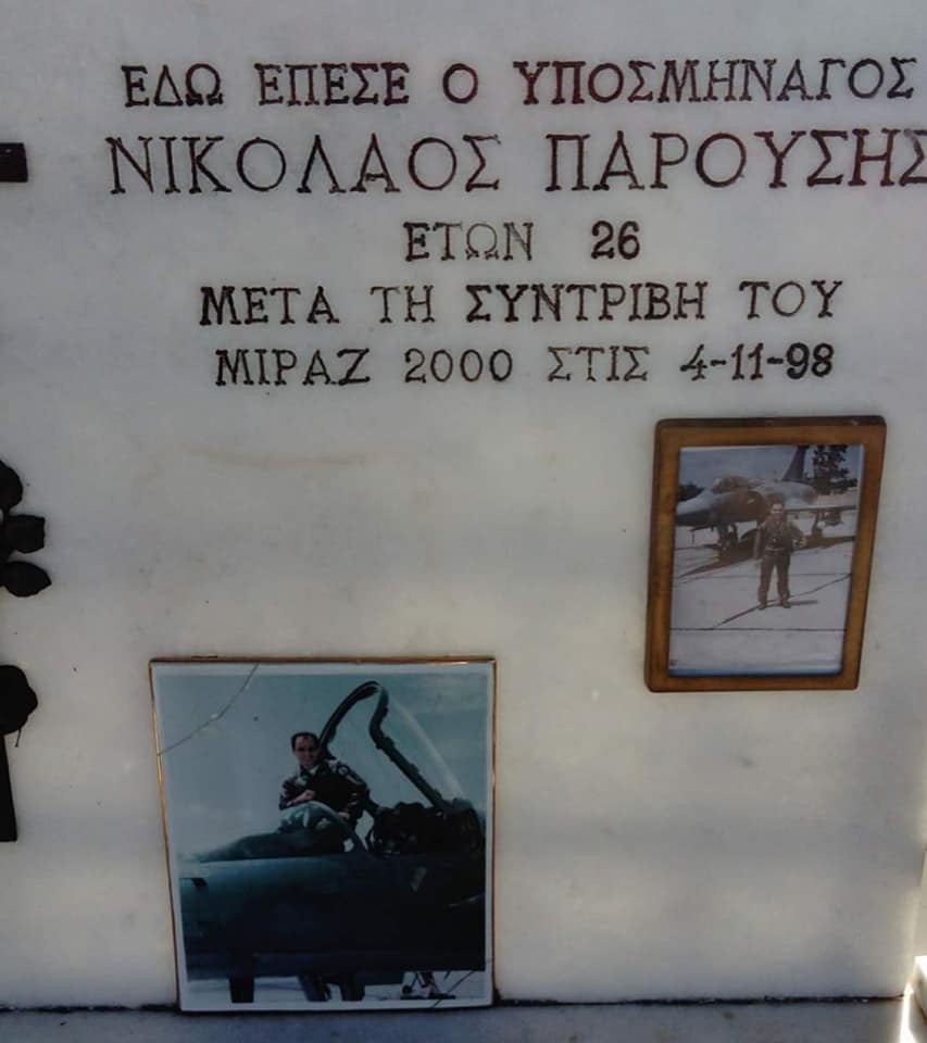 Σήμερα 4 Νοεμβρίου 2019 συμπληρώνονται 21έτη από τη πτώση του αεροσκάφους και τον ηρωικό θάνατο του Υποσμηναγού. Σκοτώθηκε κατά τη διάρκεια διατεταγμένης πτήσεως, όταν το αεροσκάφος Mirage 2000 του οποίου ήταν κυβερνήτης κατέπεσε μετά από μηχανική βλάβη στο Σαραντάρι Ωρωπού, στις 4 Νοεμβρίου 1998. Ο ηρωικός Υποσμηναγός(Ι) Νικόλαος Παρούσης, θα μπορούσε να χρησιμοποιήσει νωρίτερα το εκτινασσόμενο κάθισμα του αεροσκάφους, αλλά προτίμησε να παραμείνει σε αυτό και να το οδηγήσει εκτός κατοικημένης περιοχής. Του απονεμήθηκε μετά θάνατον το Μετάλλιο Εξόχου Πράξεως με το Προεδρικό Διάταγμα της 23ης Ιουλίου 1999.