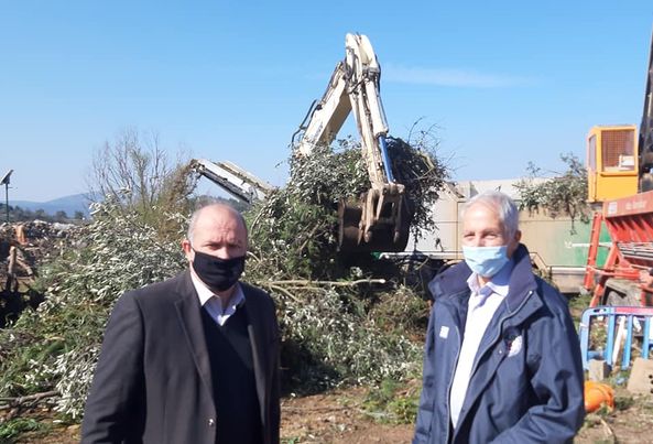 Επίσης, επέβλεψαν στο Γήπεδο Διονύσου τις εργασίες διαχείρισης των οργανικών αποβλήτων δηλαδή των κορμών και των κλαδιών των δέντρων που άφησε πίσω της η σφοδρή κακοκαιρία, οι οποίες πραγματοποιούνται χάριν στην συμβολή του ΕΣΔΝΑ με μέσα και προσωπικό. Με ισχυρή την παρουσία μηχανημάτων και φορτηγών της Περιφέρειας Αττικής και του Δήμου καταβάλλεται νυχθημερόν μία τεράστια προσπάθεια συλλογής και θρυμματισμού τους, τα οποία στη συνέχεια θα γίνουν κομπόστ.