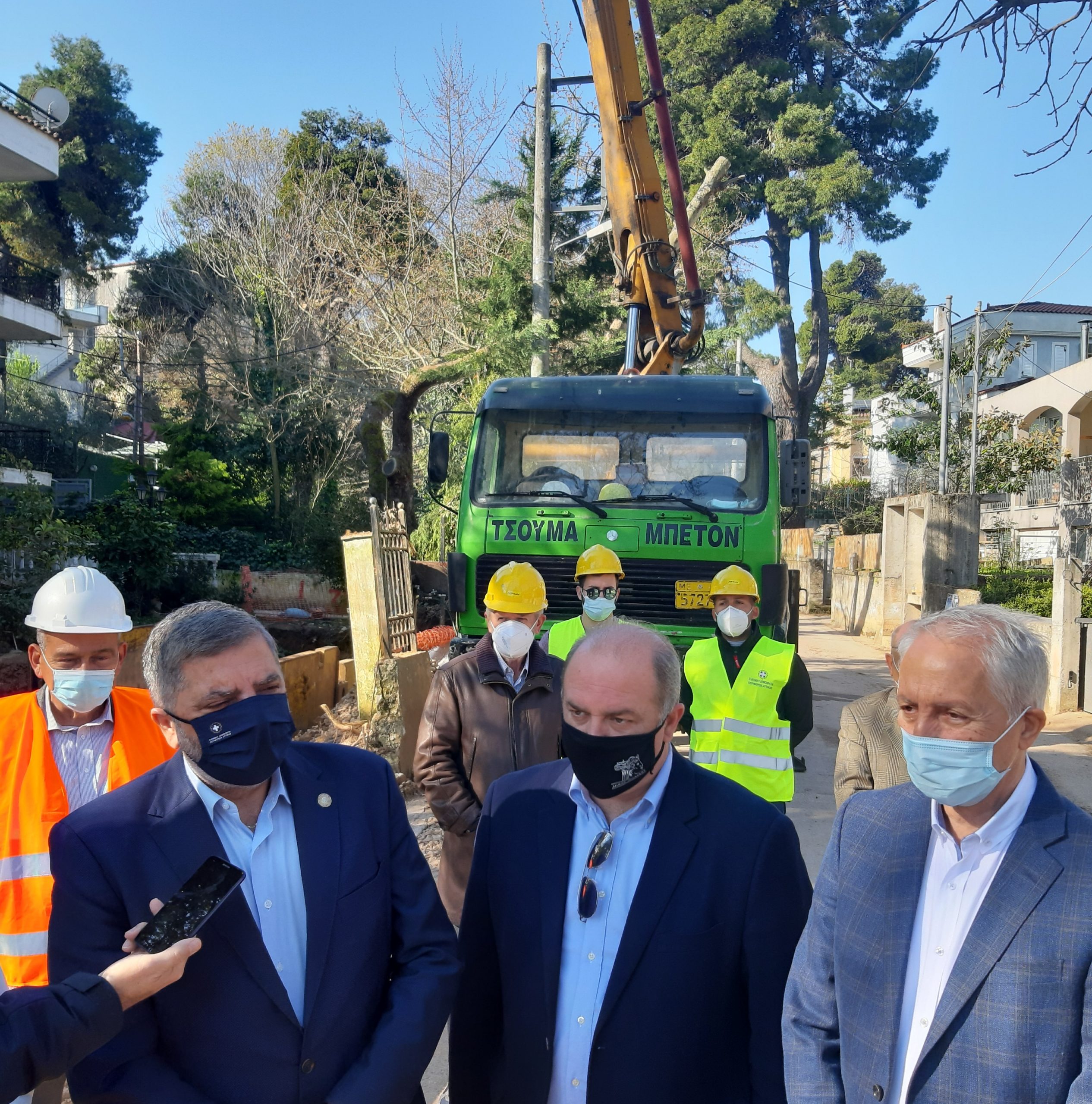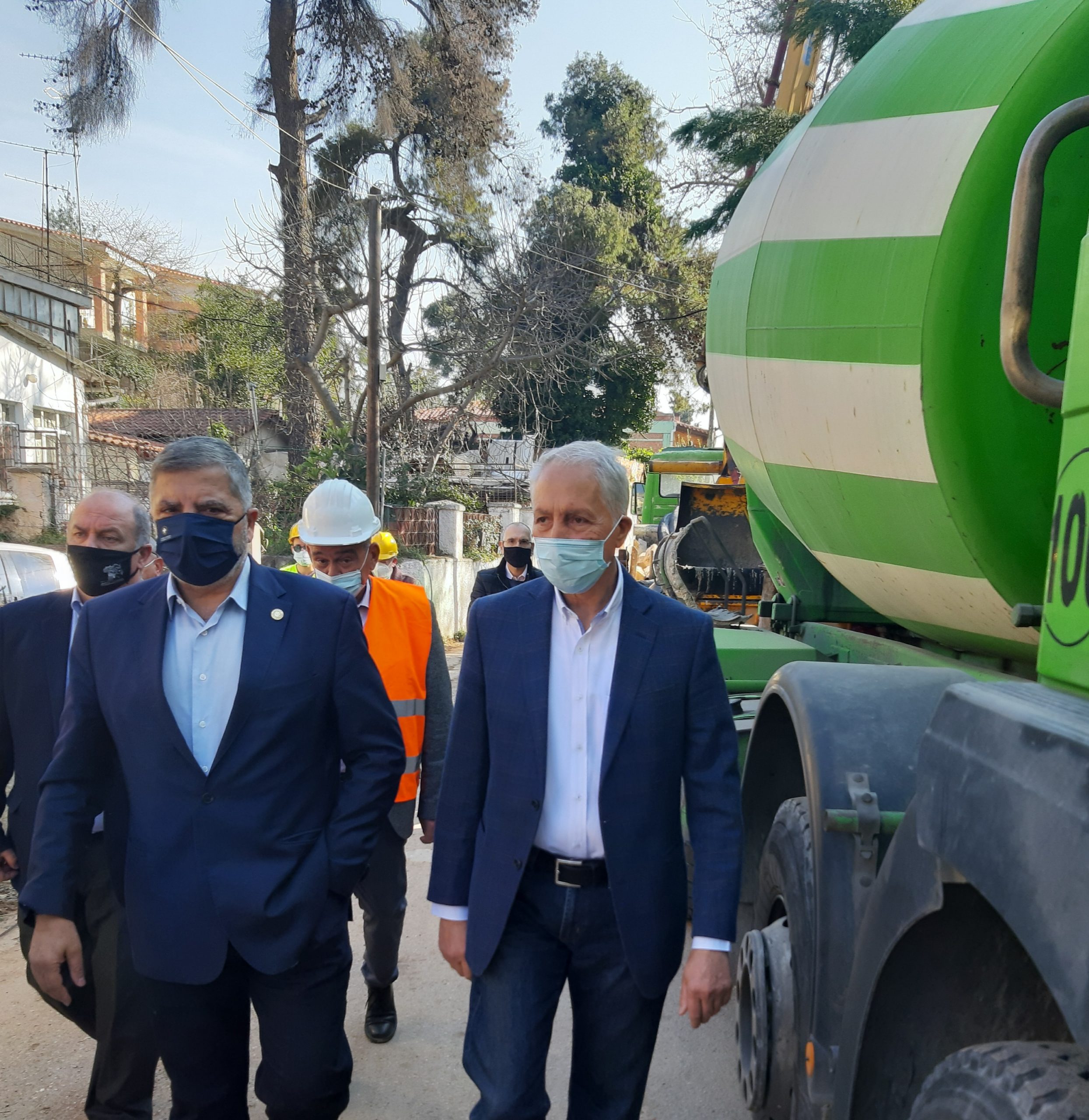 Στο σημείο που υλοποιούνται από την Περιφέρεια Αττικής τα έργα αντιπλημμυρικής προστασίας στο ρέμα «Βρυσάκι» στον Άγιο Στέφανο του Δήμου Διονύσου μετέβη σήμερα ο Αντιπεριφερειάρχης Ανατολικής Αττικής Θανάσης Αυγερινός, συνοδεύοντας τον Περιφερειάρχη Αττικής Γιώργο Πατούλη, για τη διενέργεια αυτοψίας για την πορεία των εργασιών.