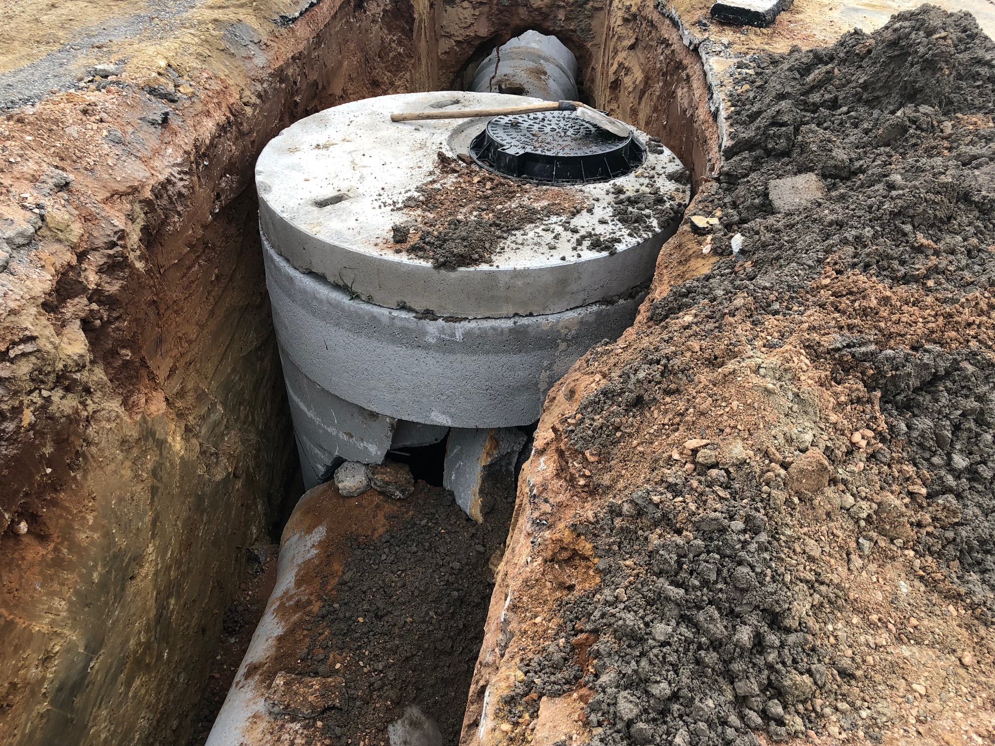 Δημοπρατήθηκε από την Δ/νση Τεχνικών Έργων της Περιφερειακής Ενότητας Ανατολικής Αττικής και τον Οκτώβρη 2018 ξεκίνησαν οι εργασίες για το έργο με τίτλο «Έργα Αντιπλημμυρικής Προστασίας, Κατασκευή Αποχέτευσης Ομβρίων του κυρίως οικισμού Καλυβίων – Δ΄φάση». Το έργο έχει προγραμματιστεί να ολοκληρωθεί τον Ιούνιο 2019.