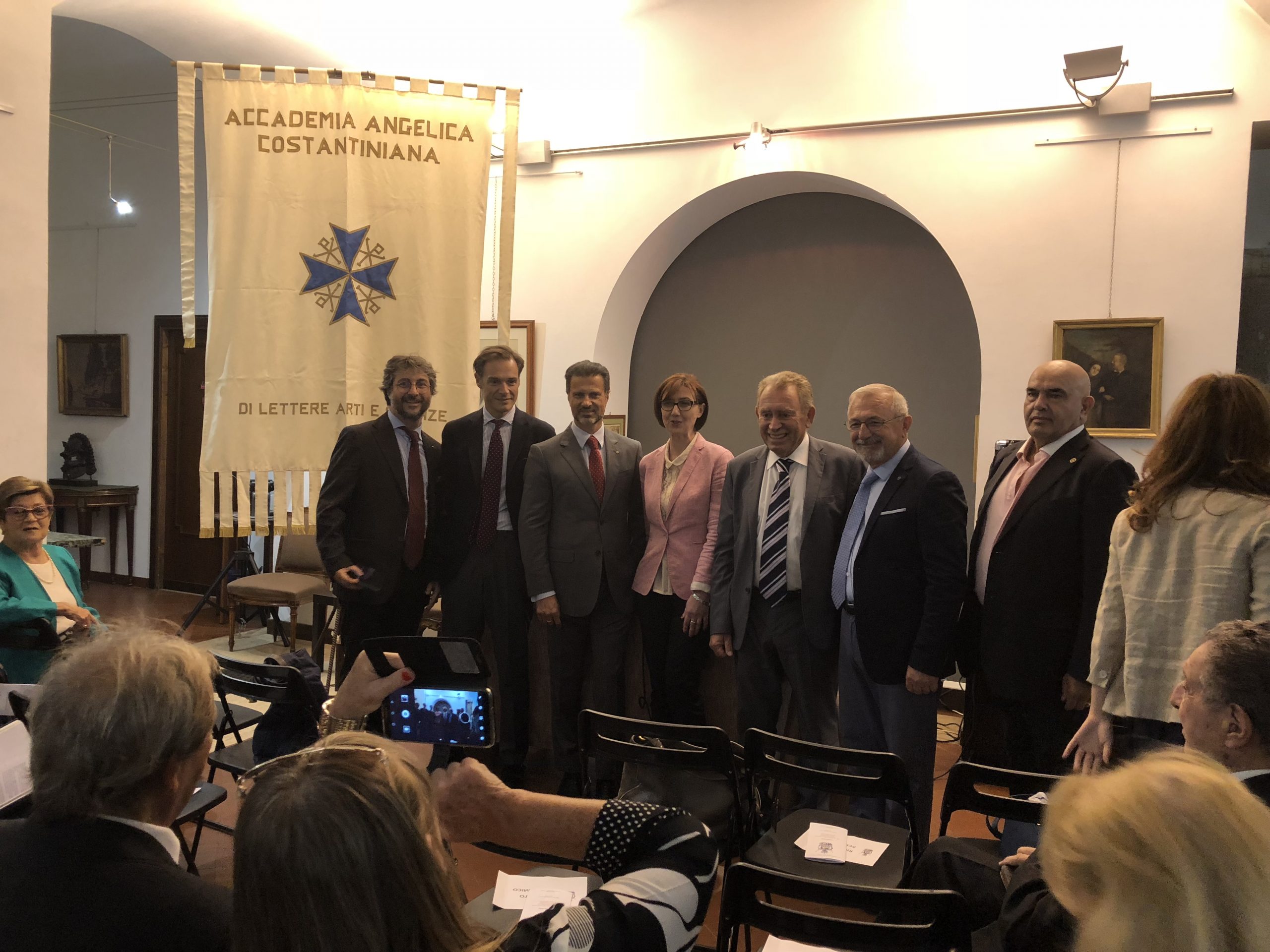 Χαιρετισμό απεύθυναν ο Πρόεδρος της Ακαδημίας κ. AlessioAngelo – ComnenodiTessaglia, η κ. CarlaMazzucaκαθώς και η Πρέσβης της Αλβανίας κ. AnilaBitriLani. Επίσης παρευρέθηκε αντιπροσωπεία της Ελληνικής Πρεσβείας στη Ρώμη καθώς και σημαντικές προσωπικότητες των γραμμάτων.