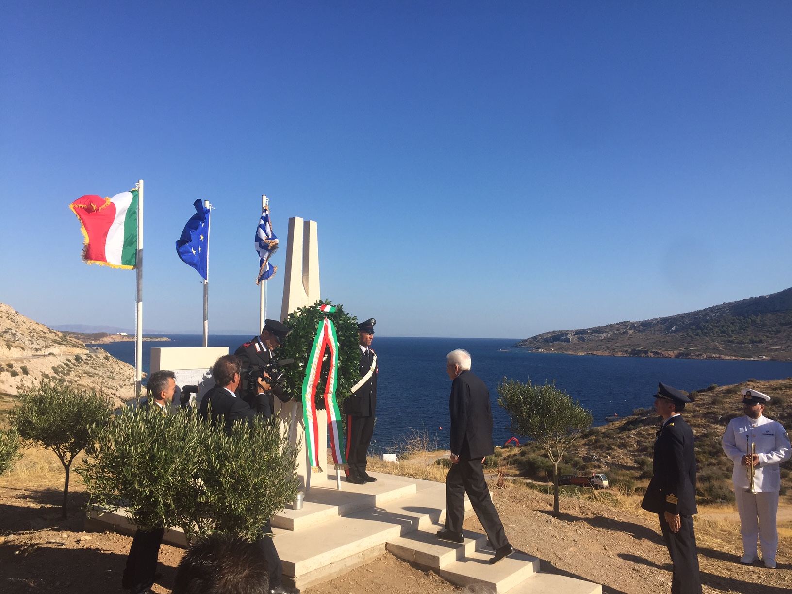 Σε μια σεμνή τελετή ο Πρόεδρος της Ιταλικής Δημοκρατίας κ. Sergio Mattarella κατάθεσε στεφάνι στο μνημείο των 4100 νεκρών Ιταλών του ναυαγίου ORIA στον Πάτροκλο το 1944, στο πλαίσιο της επίσκεψής του στη χώρα μας.
