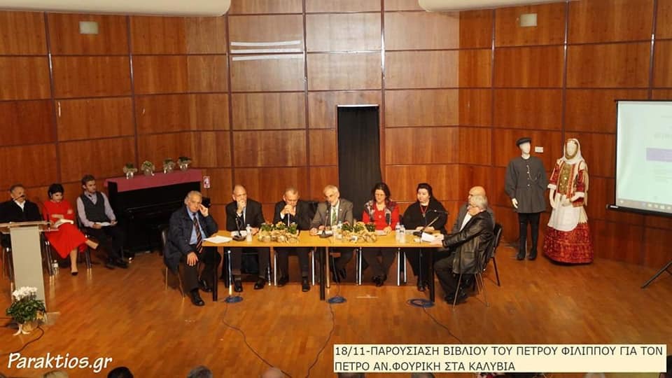 Σε μια όμορφη εκδήλωση στο κατάμεστο Αμφιθέατρο του Δημαρχιακού Μεγάρου Σαρωνικού, στα Καλύβια πραγματοποιήθηκε το απόγευμα της Κυριακής 18 Νοεμβρίου η παρουσίαση του βιβλίου «Ο Σαλαμίνιος αρχαιολόγος – ιστορικός – λαογράφος – γλωσσολόγος ΠΕΤΡΟΣ ΑΝ. ΦΟΥΡΙΚΗΣ (1878-1936)», την επιμέλεια του οποίου είχε ο Αντιπεριφερειάρχης Ανατολικής Αττικής Πέτρος Φιλίππου.
