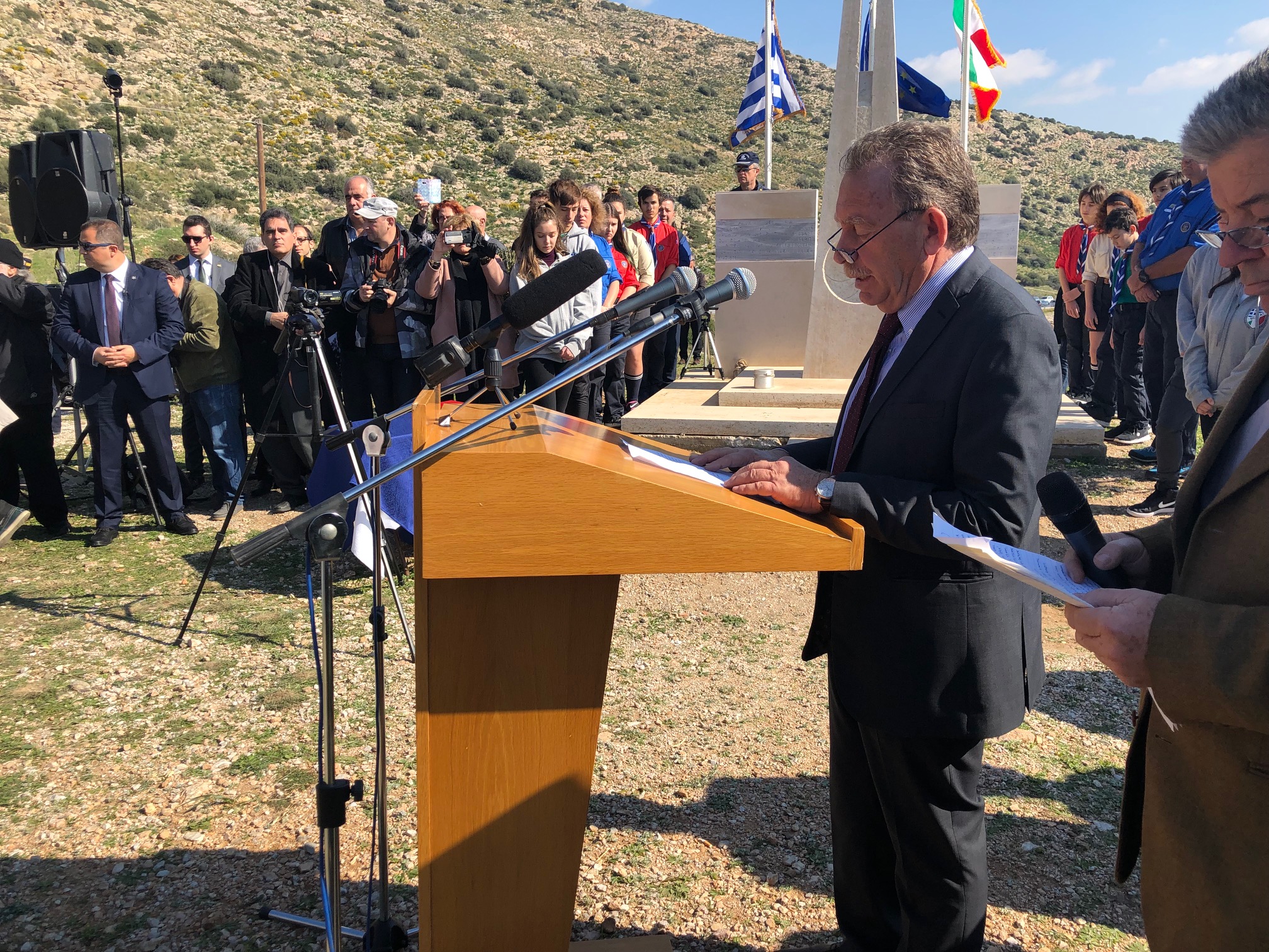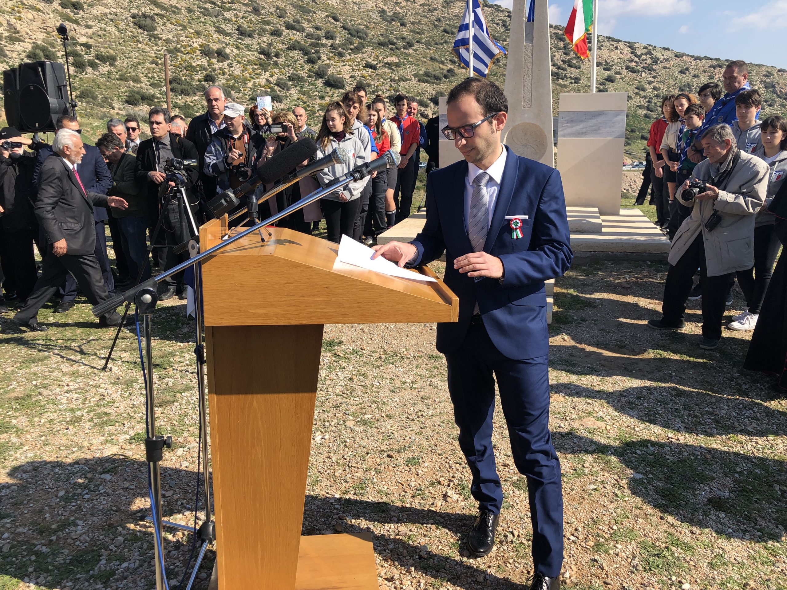 Ακολούθησαν σύντομοι χαιρετισμοί, από τον Αντιπεριφερειάρχη Ανατολικής Αττικής κ. Πέτρο Φιλίππου, τον Πρόεδρο του ΔΣ του Συνδέσμου «Χρυσή Τομή» κ. Σταμάτη Παπαθανασίου, τον εκπρόσωπο του Συνδέσμου των Συγγενών των θυμάτων κ. SalvadoreCriniti, τον Πρέσβη της Ιταλίας στην Αθήνα κ. LuigiEfisioMARRAS,  ο οποίος μετέφερε και τον χαιρετισμό της Α.Ε. του Προέδρου της Ιταλικής Δημοκρατίας κυρίου SergioMattarela και ολοκληρώθηκαν με τον χαιρετισμό της Α.Ε. του Πρόεδρου της Δημοκρατίας κυρίου Προκοπίου Παυλοπούλου.