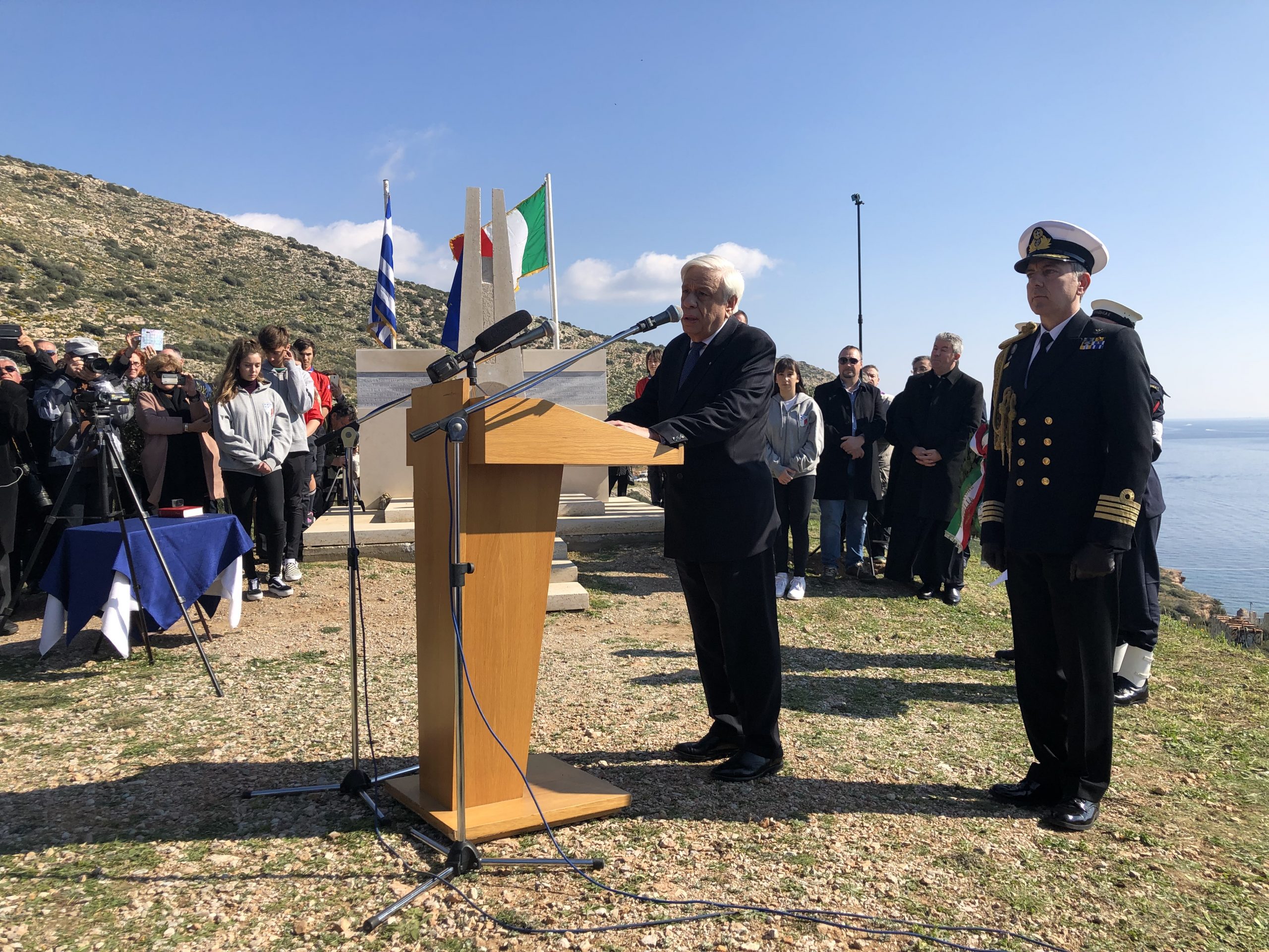 Στη συνέχεια κατέθεσαν στεφάνι η Α. Ε. ο Πρόεδρος της Δημοκρατίας κύριος Προκόπιος Παυλόπουλος και εκπροσωπώντας την Α.Ε. τον Πρόεδρο της Ιταλικής Δημοκρατίας κύριο SergioMattarela, ο Πρέσβης της Ιταλίας στην Αθήνα κ. LuigiEfisioMarras, ενώ αποδόθηκαν οι δέουσες τιμές στους νεκρούς του ORIA και από το Άγημα και την Μπάντα του Πολεμικού Ναυτικού και έγινε ανάκρουση των εθνικών ύμνων της Ιταλίας και της Ελλάδας.