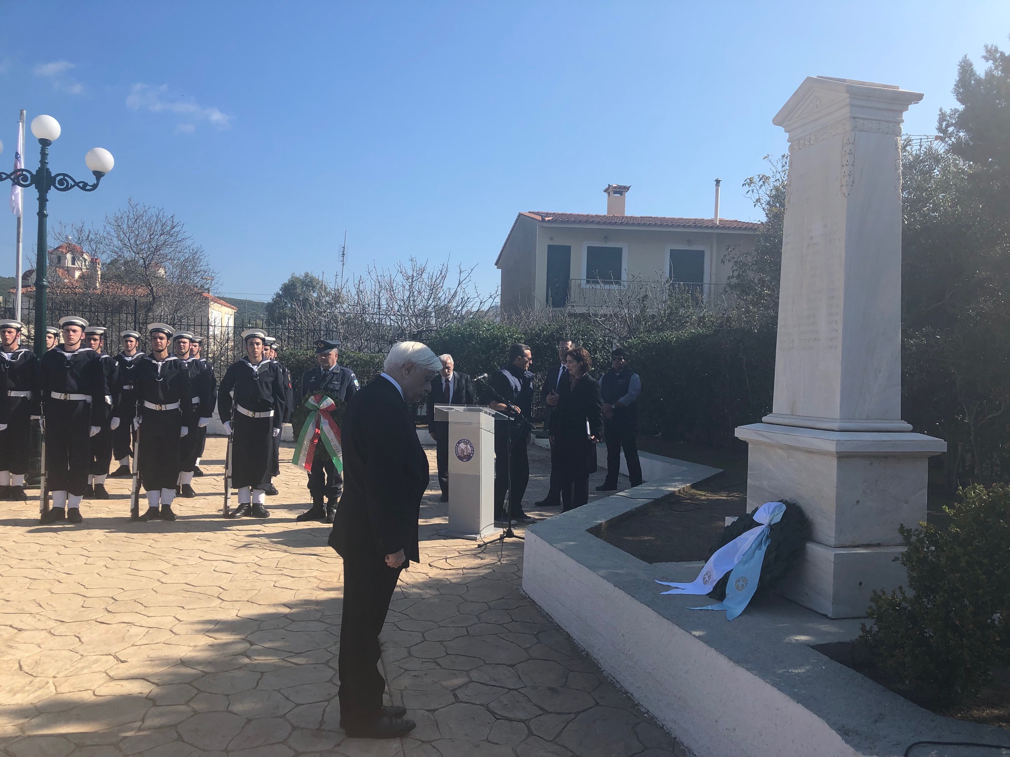 Μετά το πέρας της εκδήλωσης, στην Πλατεία των Λεγραινών, στο μνημείο των 17 εκτελεσθέντων κατοίκων των Λεγραινών, το καλοκαίρι του 1944 από τους Γερμανούς κατακτητές, πραγματοποιήθηκε επιμνημόσυνη δέηση ακολούθησε κατάθεση στεφάνων από την Α.Ε. τον Πρόεδρο της Δημοκρατίας κύριο Προκόπιο Παυλόπουλο και εκπροσωπώντας την Α.Ε. τον Πρόεδρο της Ιταλικής Δημοκρατίας κύριο SergioMattarela, ο Πρέσβης της Ιταλίας στην Αθήνα κ. LuigiEfisioMarras. Στη συνέχεια ο Δήμαρχος Λαυρεωτικής            κ. Δημήτρης Λουκάς στον σύντομο χαιρετισμό του αναφέρθηκε στην ιστορία της εκτέλεσης των κατοίκων.