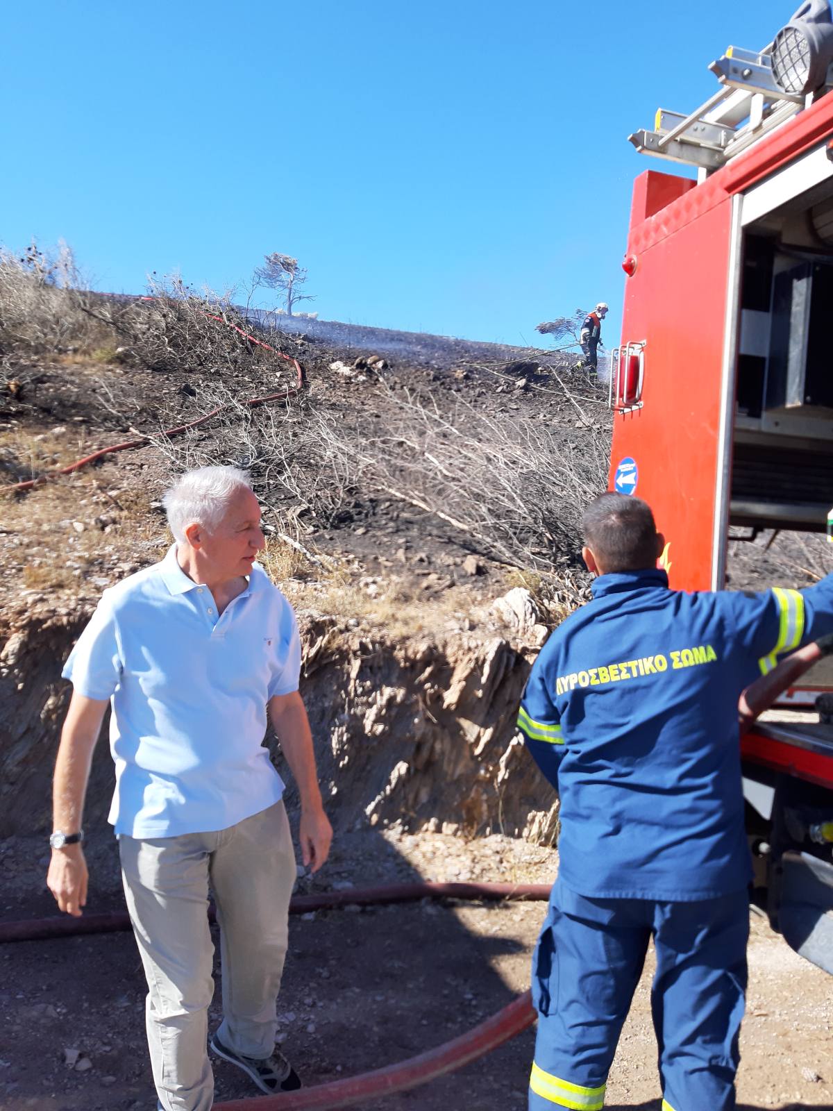 Ενώ σήμερα το πρωί ο κ. Αυγερινός μετέβη εσπευσμένα στη φωτιά που ξέσπασε πολύ κοντά στο εκκλησάκι του Αγίου Παρθενίου που βρίσκεται κοντά στο Λύρειο Ίδρυμα στο Νέο Βουτζά. Η φωτιά που έκαψε μια πλαγιά, χάρη στην έγκαιρη κινητοποίηση της Πυροσβεστικής και των άλλων Φορέων, σβήστηκε σύντομα, αποτρέποντας την ενίσχυση του πύρινου μετώπου και την επέκτασή του σε κατοικήσιμη περιοχή.