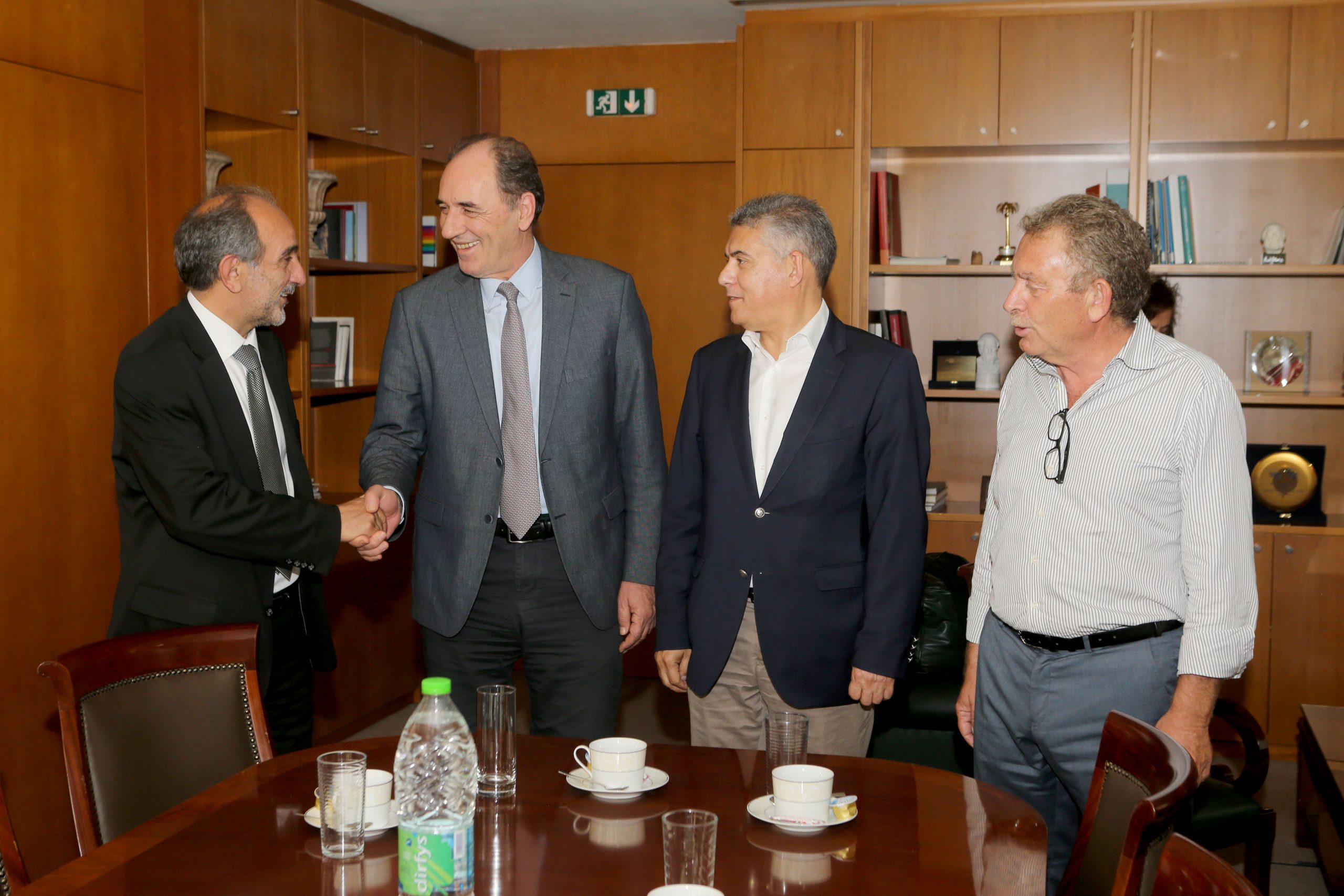 Στη συνάντηση, στην οποία συμμετείχαν επίσης ο Περιφερειάρχης Θεσσαλίας και Πρόεδρος του ΔΣ της ΕΝΠΕ Κώστας Αγοραστός ο Περιφερειάρχης Ανατολικής Μακεδονίας και Θράκης Χρήστος Μέτιος, ο Περιφερειάρχης Δυτικής Ελλάδας Απόστολος Κατσιφάρας και ο Περιφερειάρχης Πελοποννήσου Πέτρος Τατούλης, καθώς και υπηρεσιακοί παράγοντες, η συζήτηση επικεντρώθηκε στην πρόταση του υπουργείου (σχέδιο νόμου) για τον έλεγχο και την προστασία του δομημένου περιβάλλοντος, με την οποία μεταφέρεται η σχετική αρμοδιότητα στις Περιφέρειες.