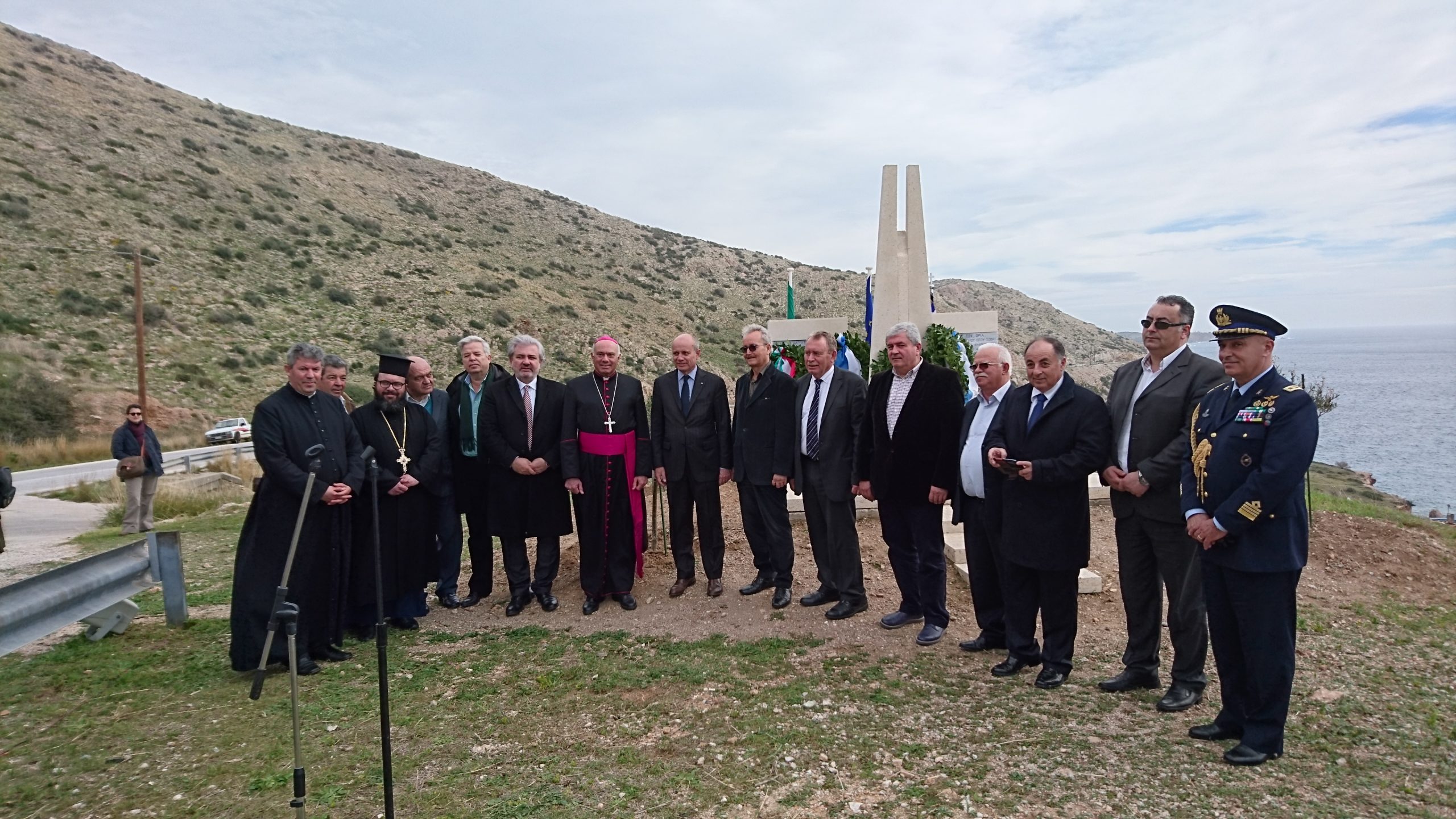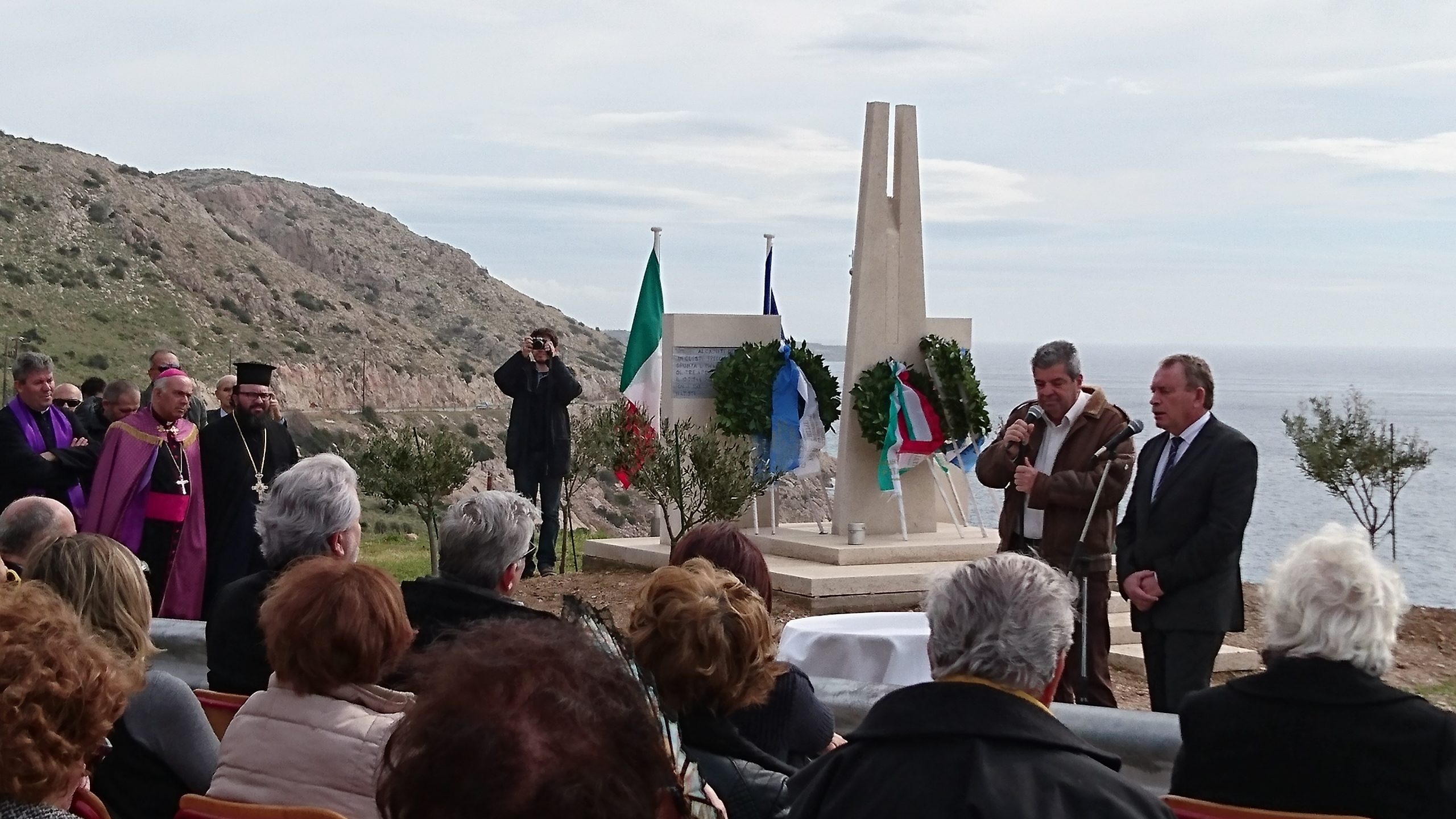Στην τελετή, στην οποία χοροστάτησε ο Σεβασμιότατος Αρχιεπίσκοπος των Καθολικών της Αθήνας π. Σεβαστιανός Ροσσολάτος, παραβρέθηκε από την πλευρά της Ιταλίας, ο Ιταλός πρέσβης στην Αθήνα κ. Luigi Efisio Marras, συνοδευόμενος από τον Ακόλουθο Άμυνας της πρεσβείας κ. Col. Nav. Pil. Antonio Albanese για να αποδώσουν τιμή στους συμπατριώτες τους που έχασαν τη ζωή τους στο ναυάγιο της 12ης Φεβρουαρίου 1944.