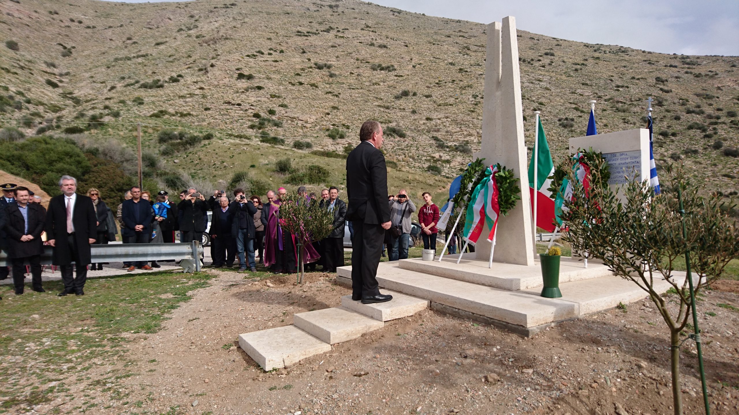 Ακολούθησε κατάθεση στεφάνων από τους διοργανωτές και την Ιταλική Πρεσβεία καθώς και ομιλίες από τον Αντιπεριφερειάρχη Ανατολικής Αττικής Πέτρο Φιλίππου, τον Ιταλό Πρέσβη Luigi Efisio Marras, τον δημοσιογράφο Νίκο Πηγαδά που πρώτος ανέδειξε δημοσιογραφικά με τα άρθρα του το μέχρι τότε άγνωστο θέμα, αλλά και κατοίκους της περιοχής – αυτόπτες μάρτυρες των τραγικών γεγονότων τον Φεβρουάριο του 1944 που με τις περιγραφές τους για όσα έζησαν συγκλόνισαν τους παραβρισκόμενους.
