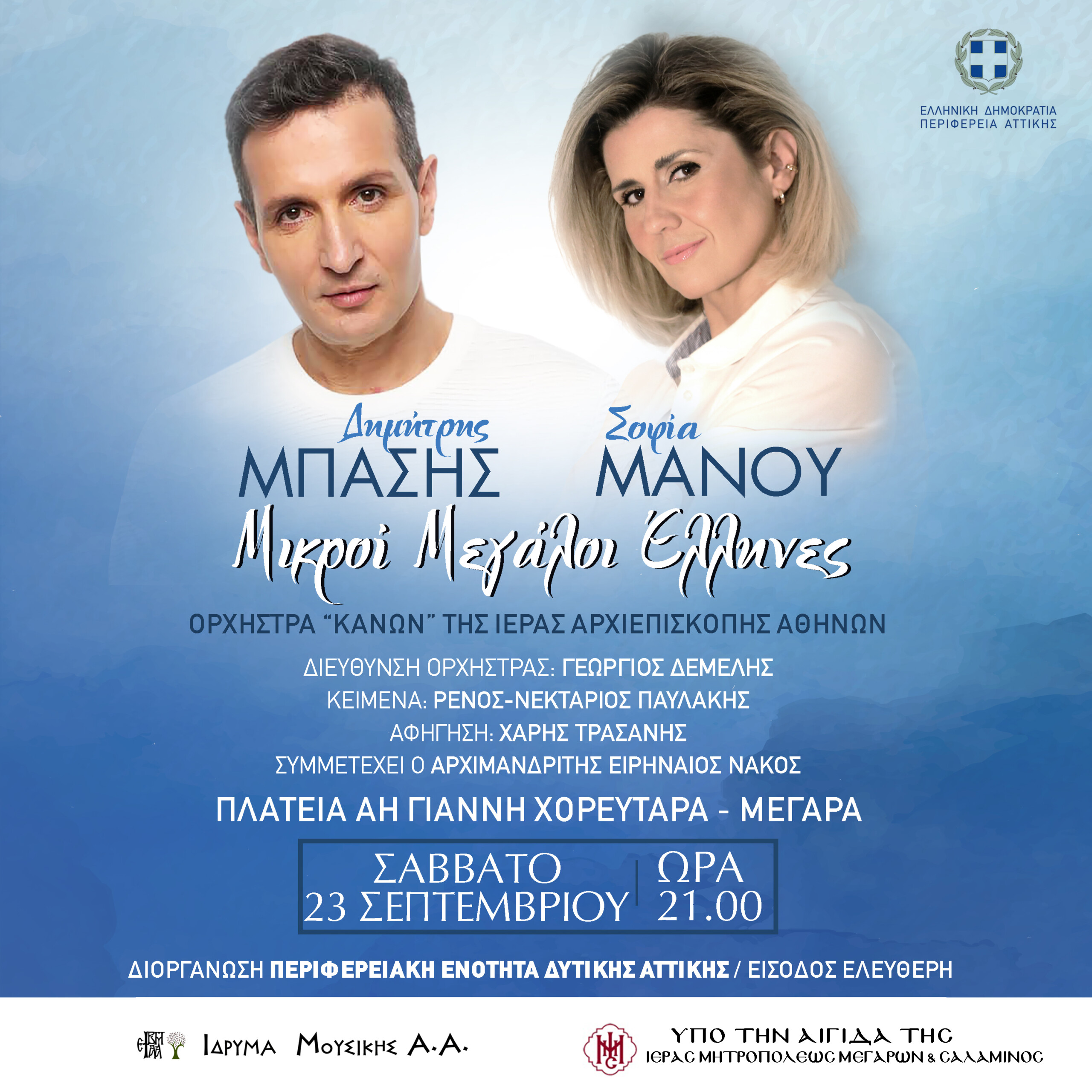 Ο Δημήτρης Μπάσης και η Σοφία Μάνου έρχονται να τραγουδήσουν τους ανθρώπους που βίωσαν την αγάπη για αυτό το τόπο ως τρόπο ζωής, ως θυσία. Τραγουδούν για τους ήρωες, για τους αγωνιστές, για όλους τους ανώνυμους «…μικρούς Μεγάλους Έλληνες…». Αυτοί οι Έλληνες τους χθες και του σήμερα που γίνονται μεγάλοι.