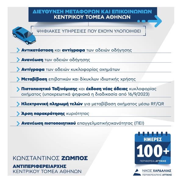 Αθήνα, 14 Μαΐου 2024 – Η Περιφέρεια Αττικής προχωρά στην ενίσχυση των ψηφιακών υπηρεσιών της Διεύθυνσης Μεταφορών, με στόχο την καλύτερη και ταχύτερη εξυπηρέτηση των πολιτών. Στο πλαίσιο της συνεχούς αναβάθμισης των δημόσιων υπηρεσιών, μέχρι τον Ιούνιο του 2024, η Περιφέρεια Αττικής αξιοποιεί 8 υπάρχοντα ψηφιακά εργαλεία, ενώ από τον Ιούνιο και μετά, δημιουργούνται άλλες 6 νέες καινοτόμες υπηρεσίες.